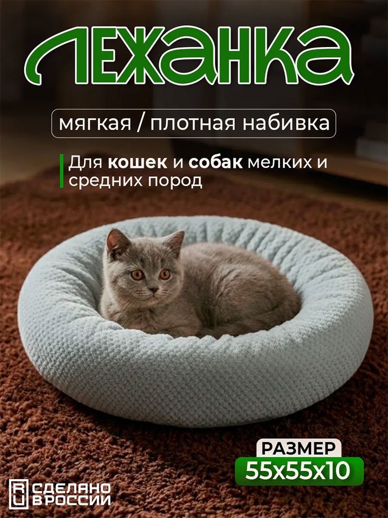 Лежанка размером 55х55 см легко разместится на любой поверхности. Она станет любимым местом отдыха для вашего питомца и уютным укрытием от дневной суеты.