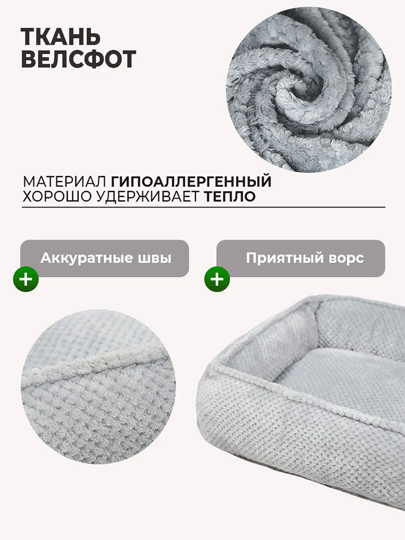 Эти подстилки созданы с любовью. Мягкие бортики добавляют уюта, а ткань велсофт с ворсом менее 1 см обеспечивает тепло даже самым требовательным питомцам. Нежный шпиц или игривая такса оценят эту заботу.