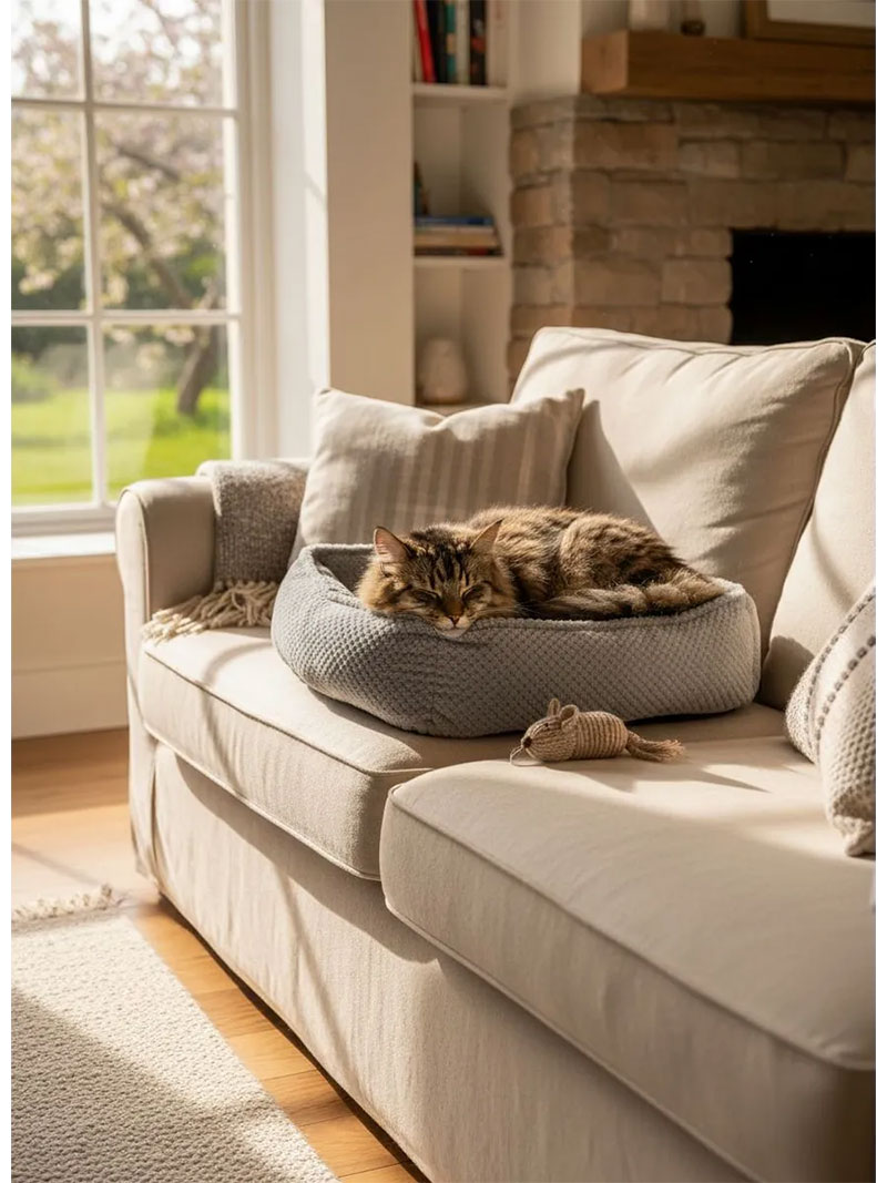 Каждая деталь продукта продумана: от лёгкой уборки до стильного дизайна. Лежанка на окне позволяет наблюдать за окружающим миром, расслабляясь.