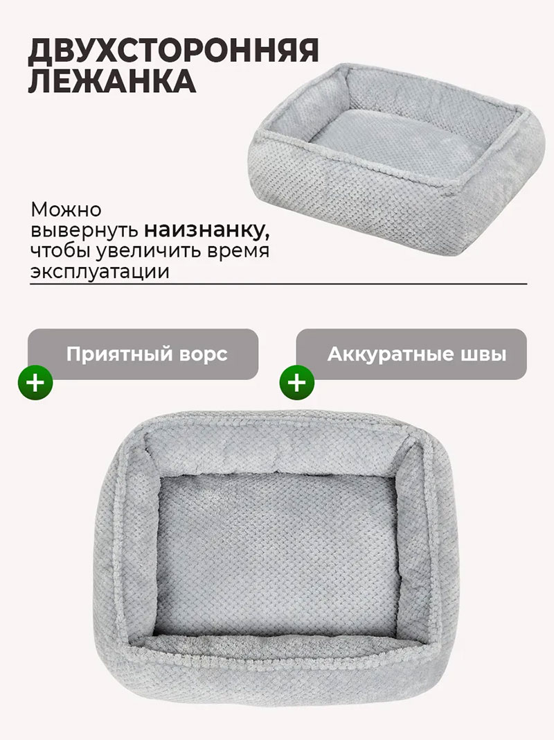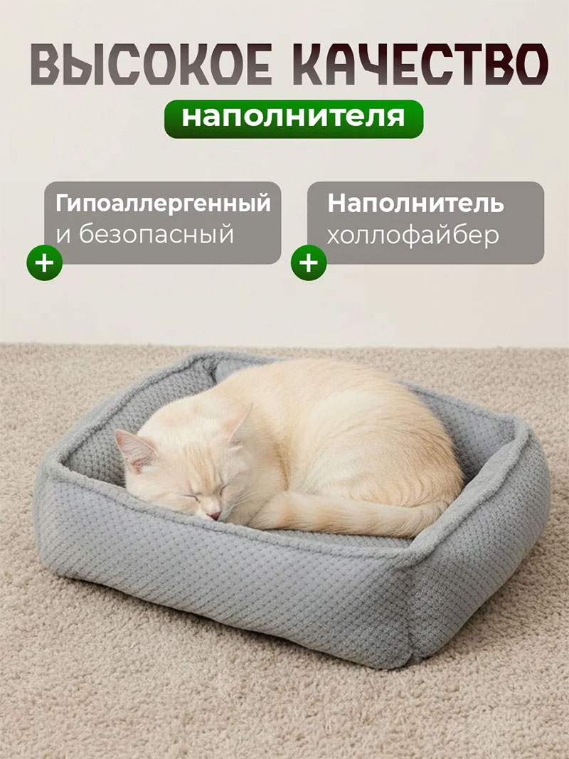 Лежанка в прямоугольной форме надёжно защищает питомца от холода и сквозняков. Для мелких пород собак важен комфорт и безопасность. Ваш питомец может спокойно разместиться в удобной позе, будь то кошка или собака.