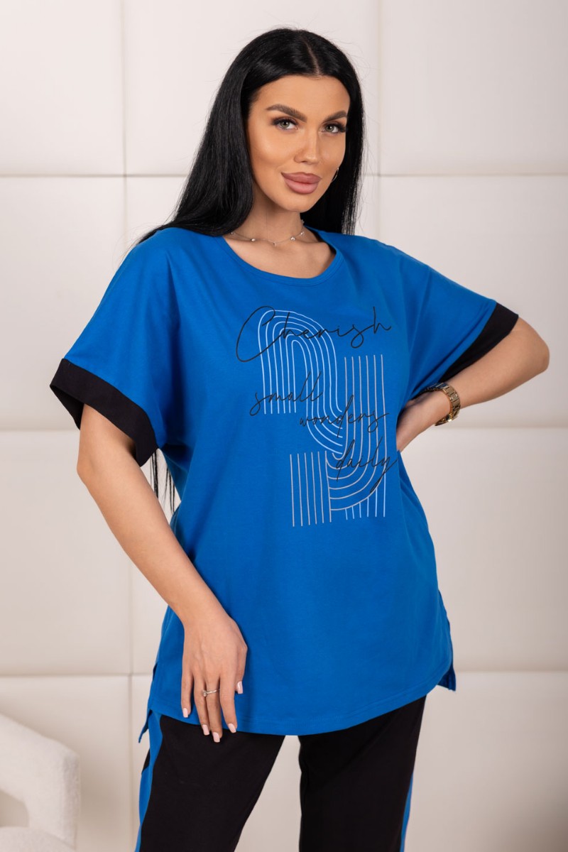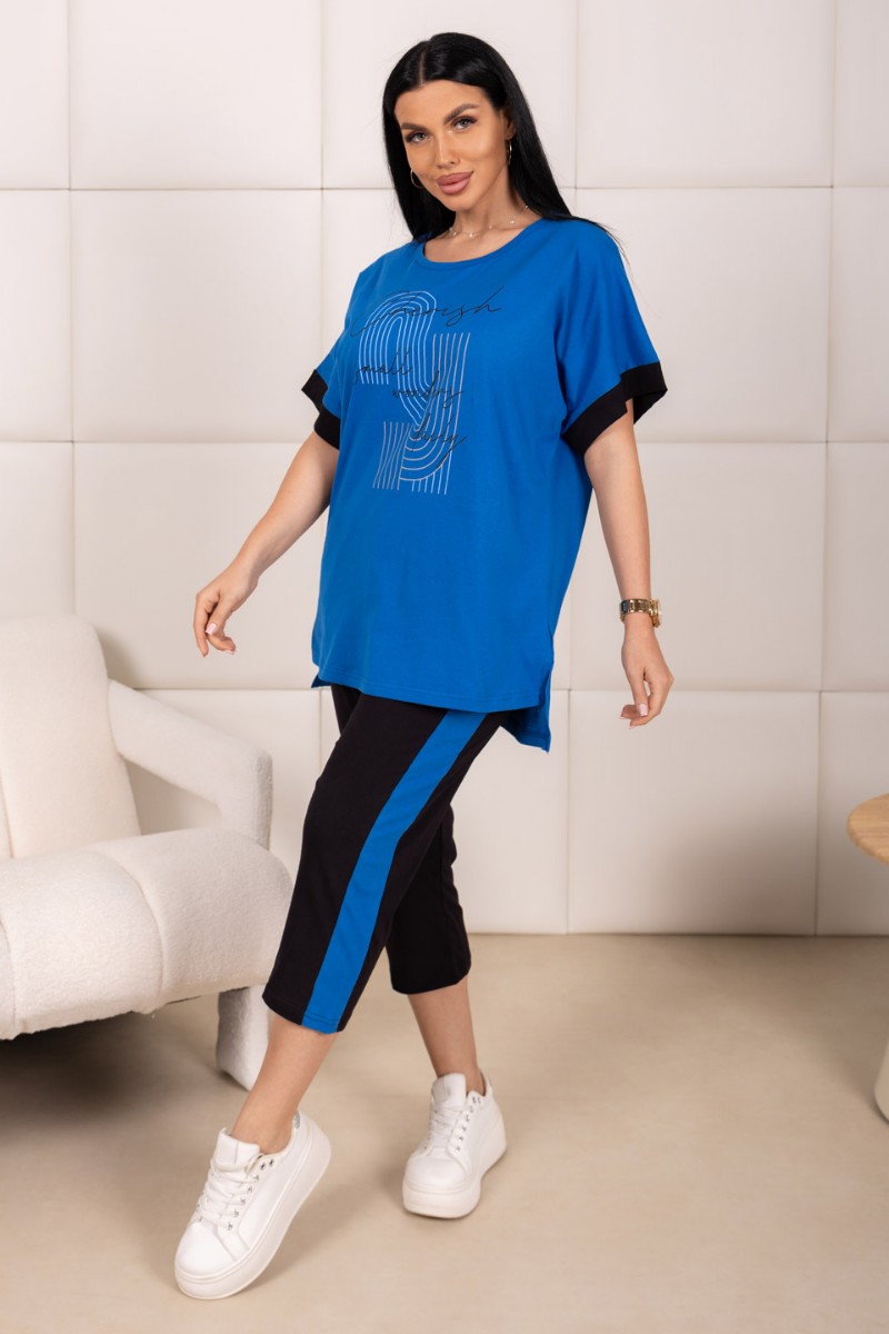 Костюм двойка женский 2173 кулирка (р-ры: 48-62) черный-синий