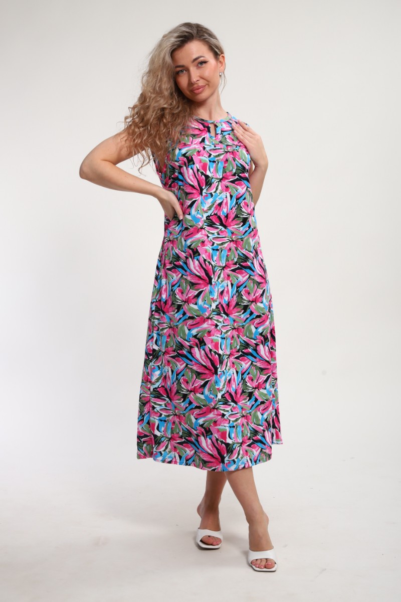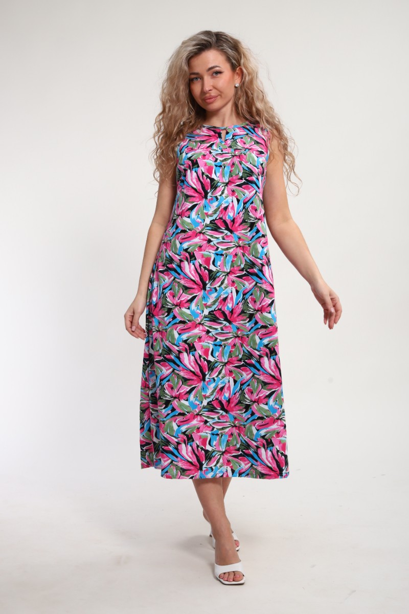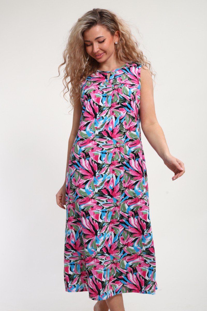 Представляем Вашему вниманию легкий женский сарафан, сшитый из натуральной, приятной телу кулирки - 100% хлопок, позволяющий коже дышать. Расцветка изделия красиво смотрится и поднимает настроение. В нём Вы будете чувствовать себя комфортно и уверенно.