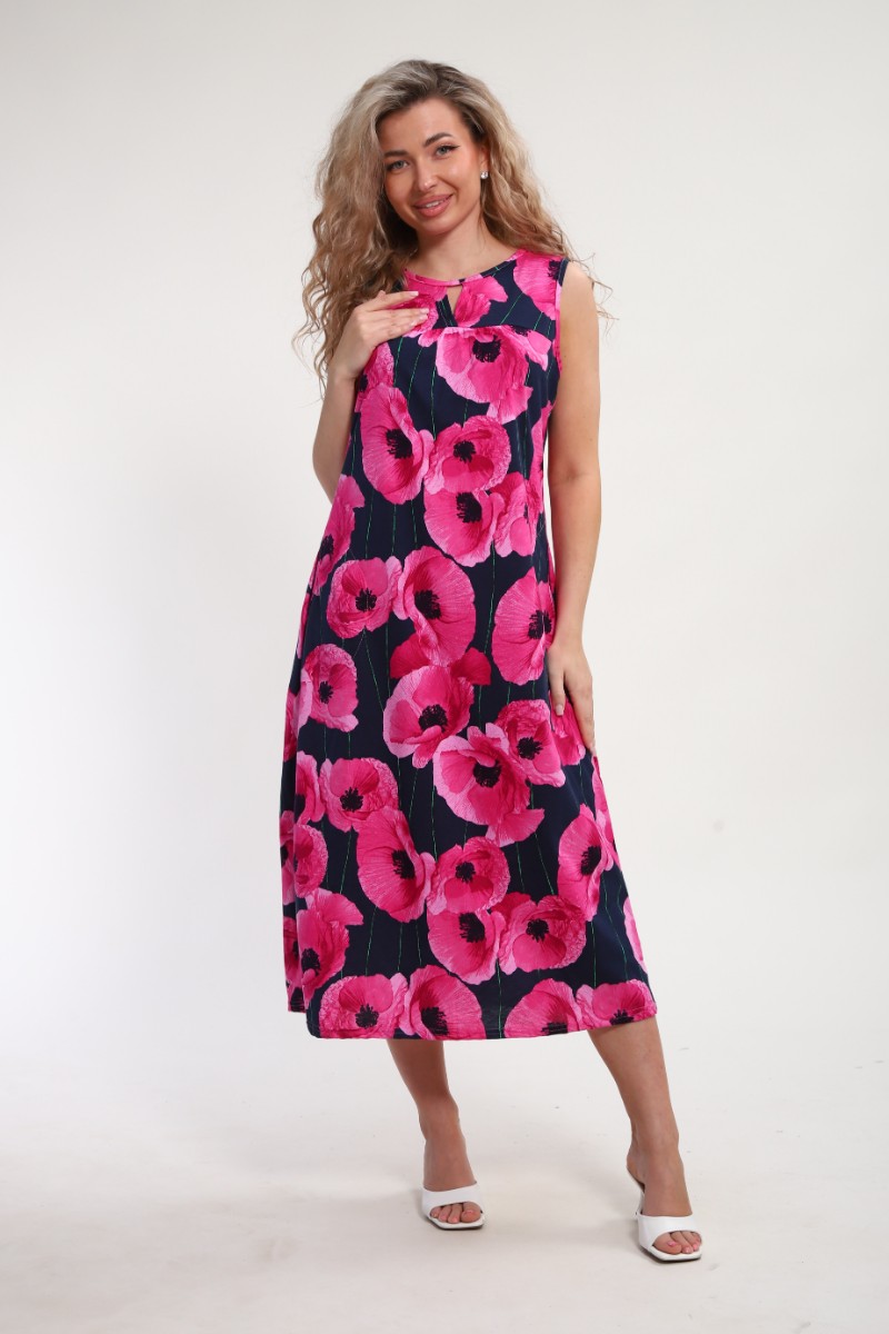 Сарафан женский "Яна" М463 кулирка (р-ры: 46-60) розовые маки