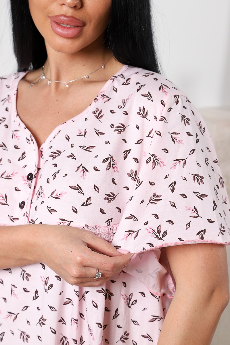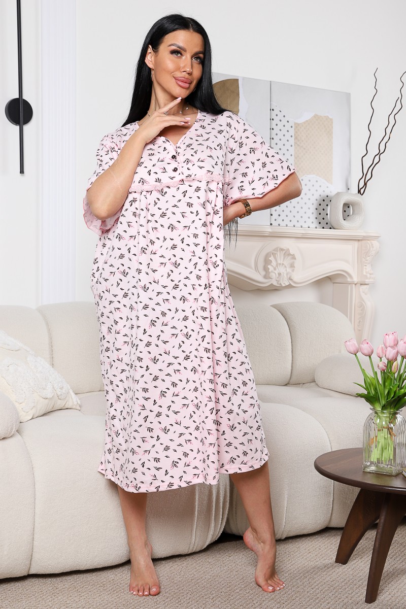 Сорочка женская 2056/6 кулирка (р-ры: 60-74) розовые листики