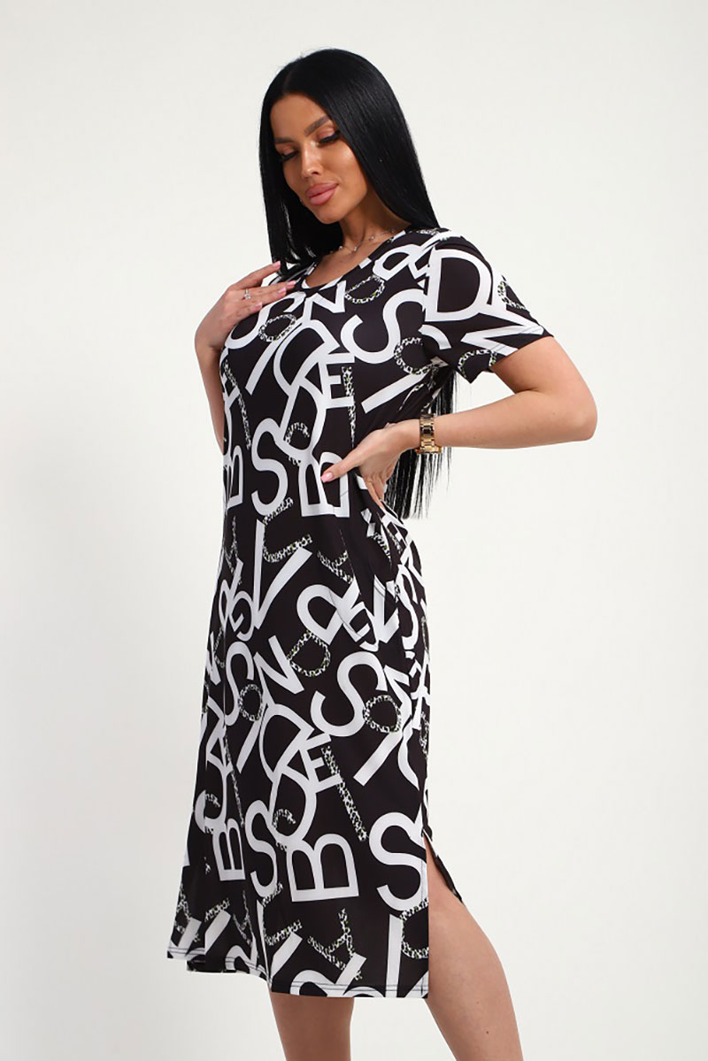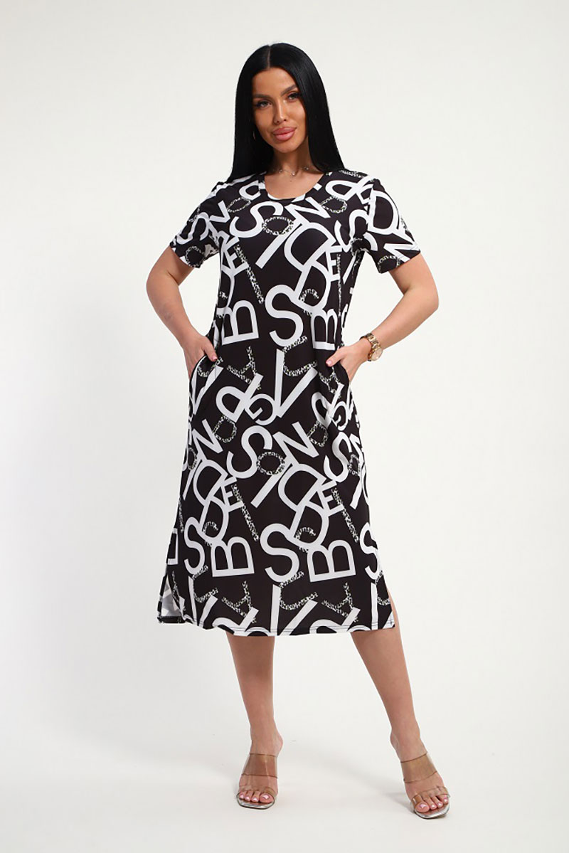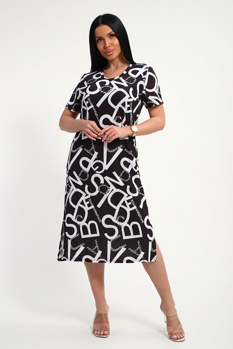 Платье женское "Изабелла" масло (р-ры: 48-62) буквы на черном