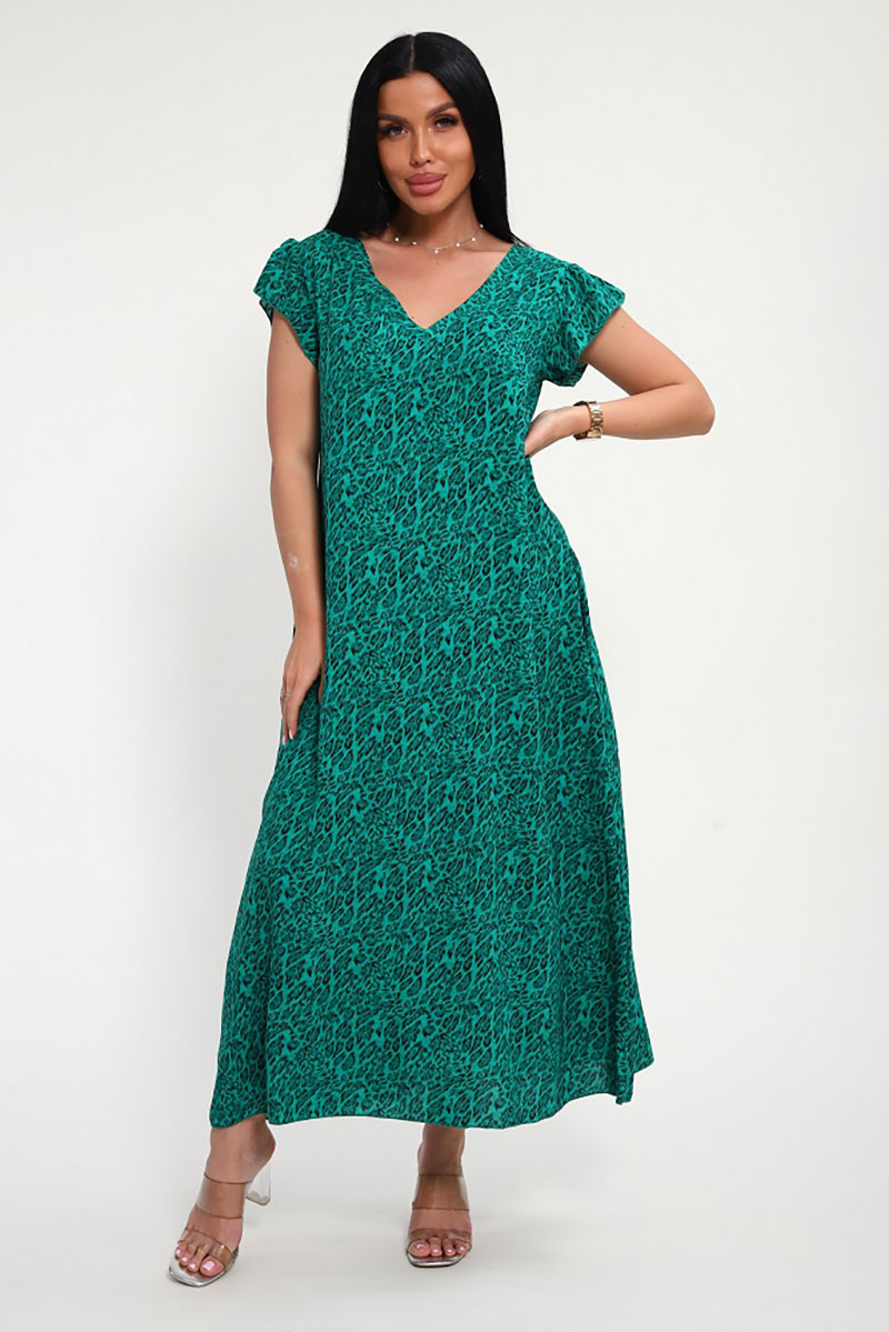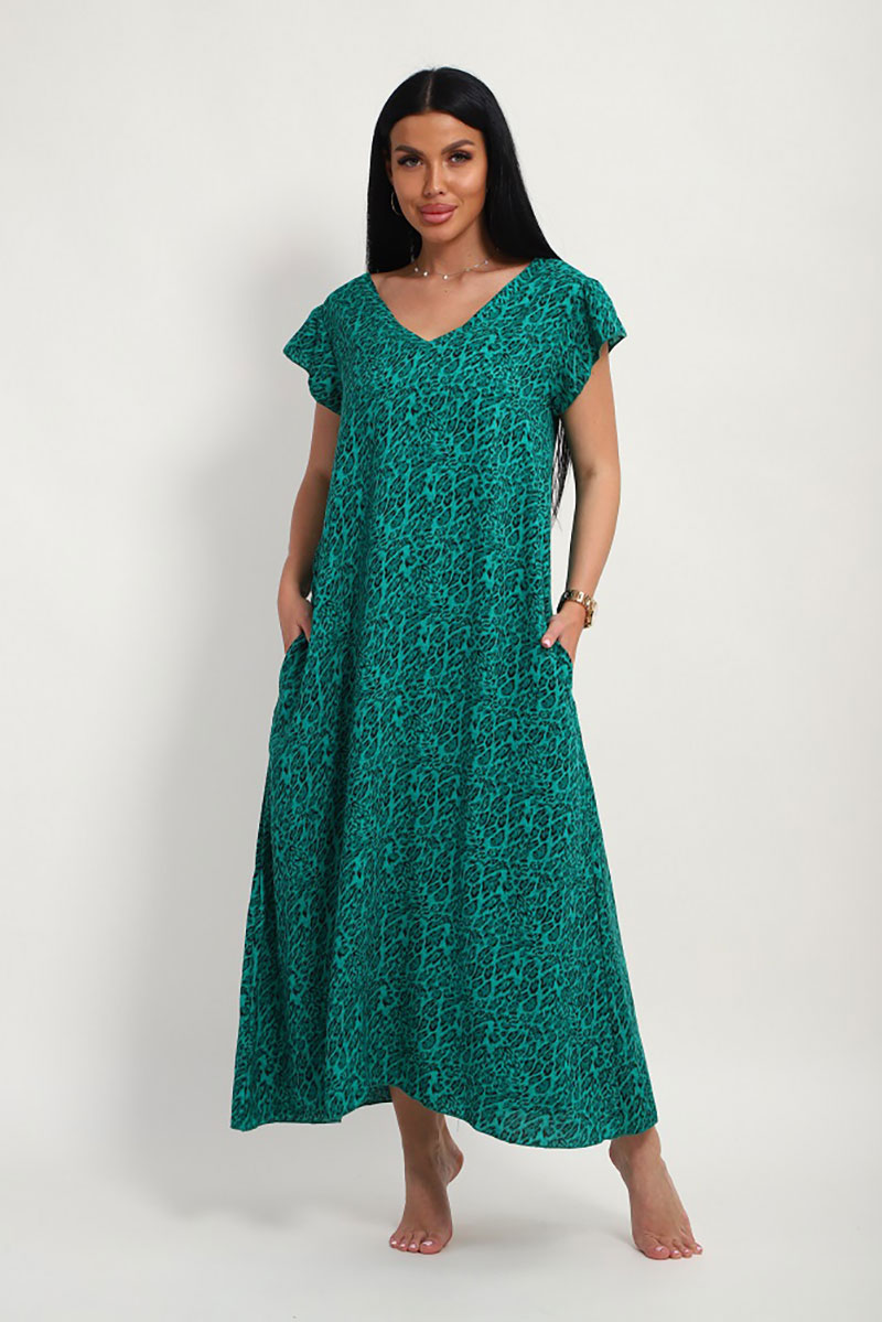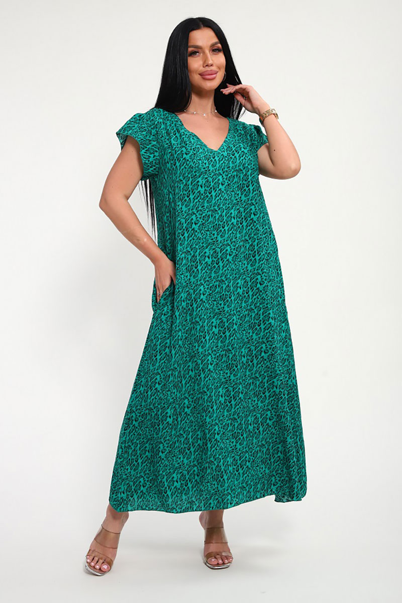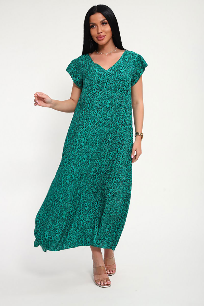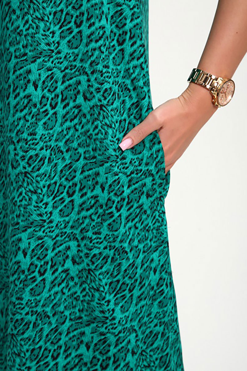 Сарафан женский "Мадонна" штапель (р-ры: 48-58) зеленый леопард