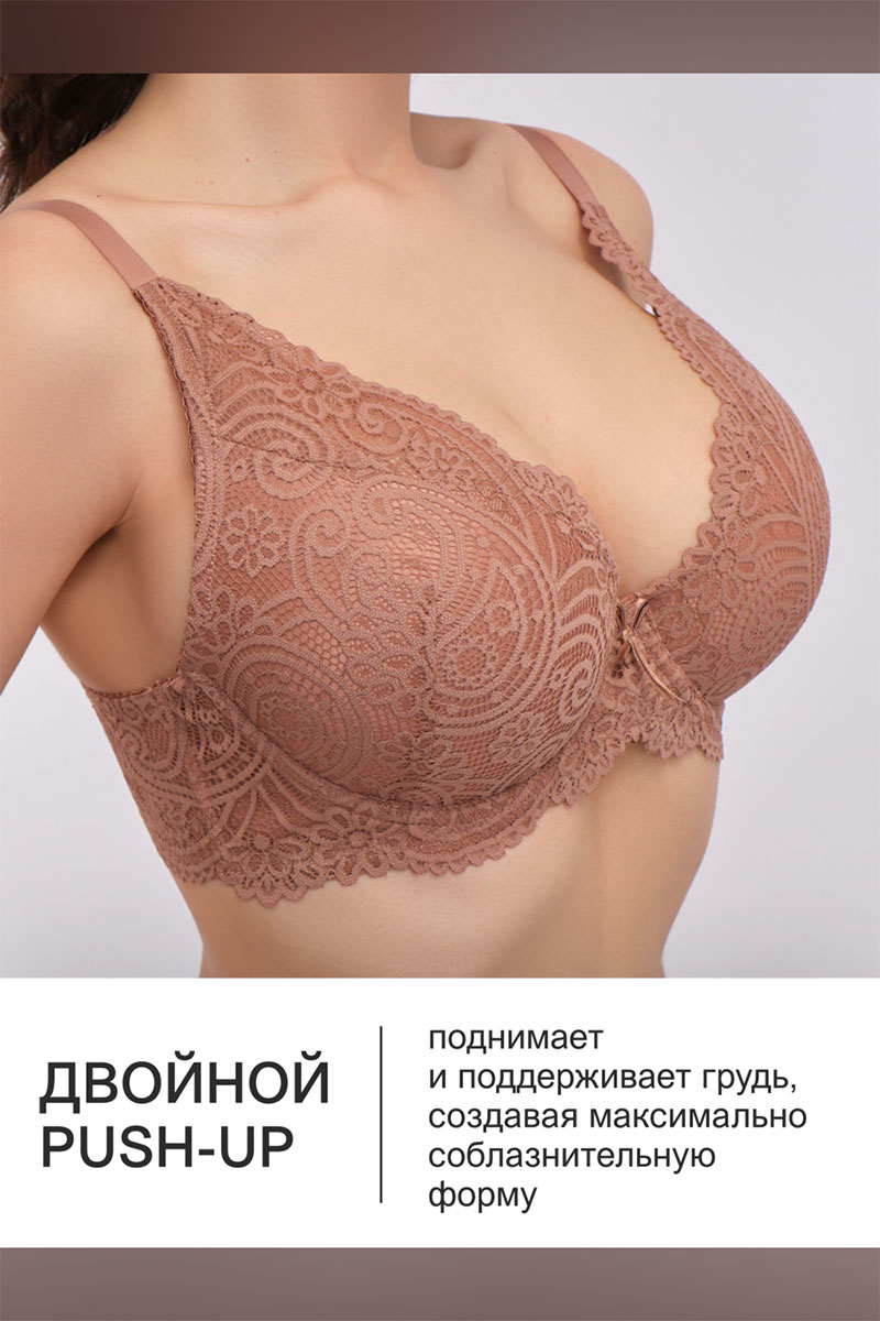 Бюстгальтер женский OIRO кружевной с пуш-ап ALICE 1032 (последний размер) кофе 105D