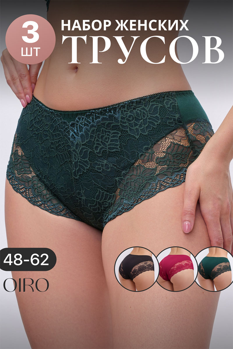 Трусы женские 802 OIRO хлопок стрейч (последний размер) синий, бордо, изумрудный - упаковка 3 шт. 48-50