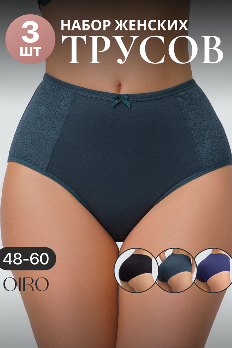 Трусы женские 3903 OIRO хлопок стрейч (последний размер) синий, черный, изумрудный - упаковка 3 шт. 50-52,52-54
