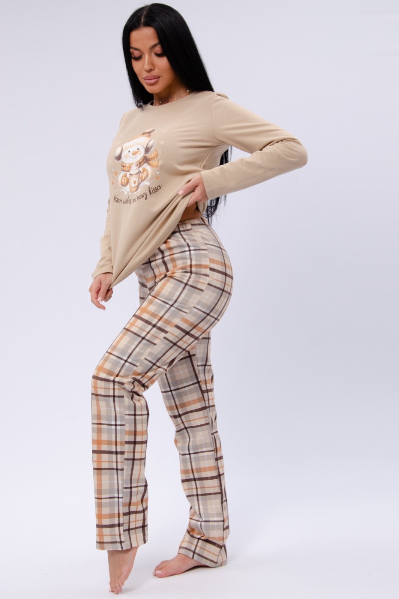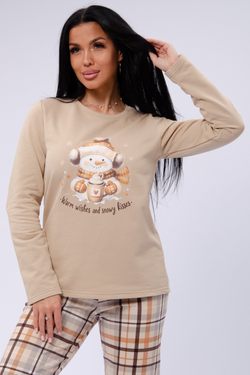 Представляем Вашему вниманию мягкую и уютную женскую пижаму, сшитую из приятного телу футера с начёсом, позволяющего коже дышать. Комплект обеспечит полную свободу движений в повседневной носке. В ней Ваш сон будет максимально приятным и расслабляющим.
