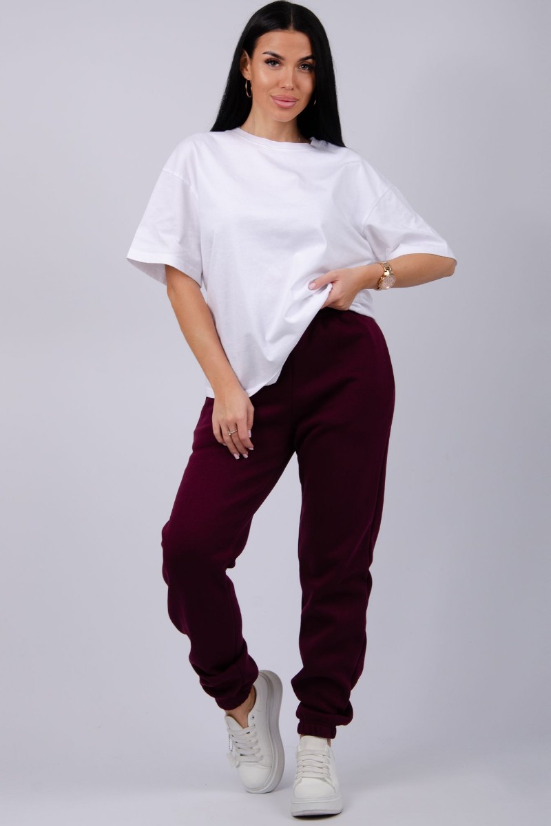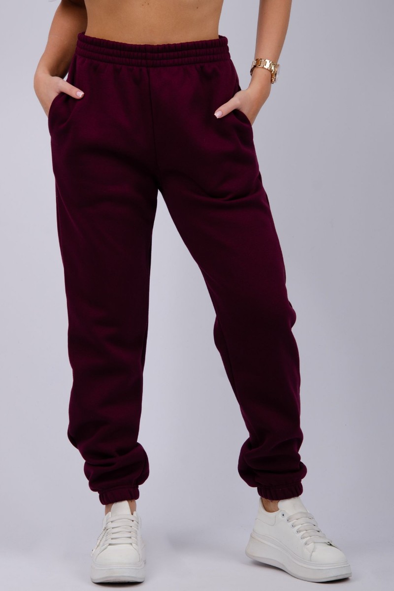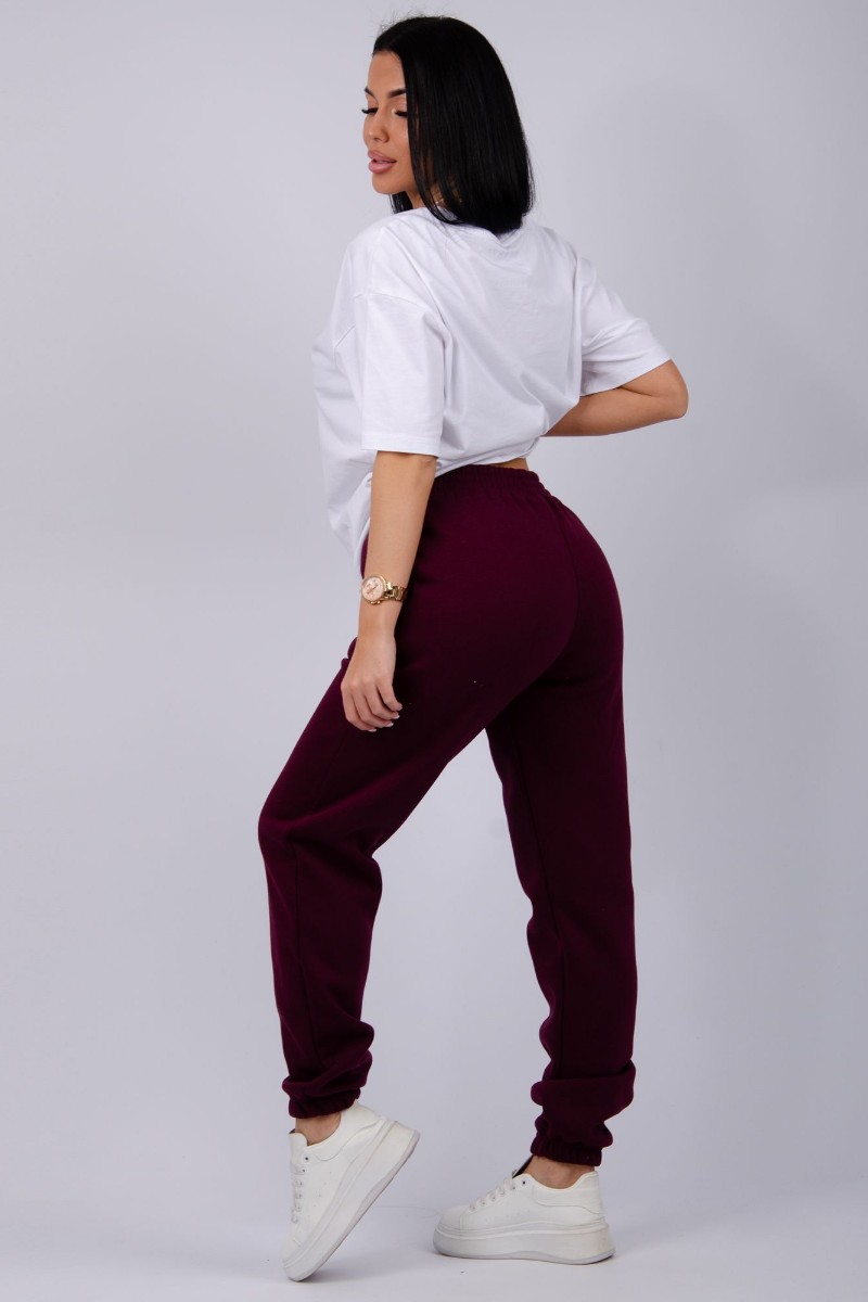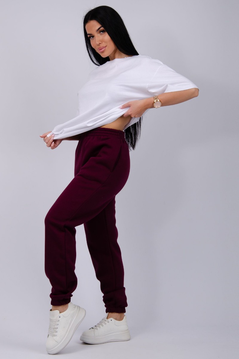 Джоггеры женские "Мистерия 2" футер 3-х нитка с начесом (последний размер) бордо 46,54