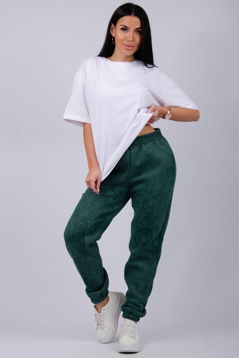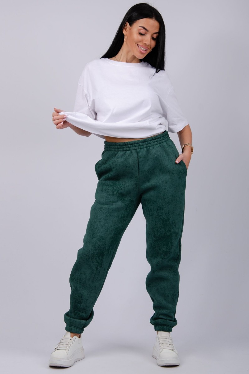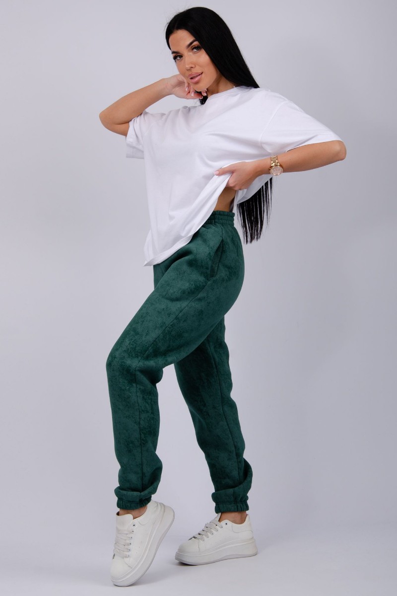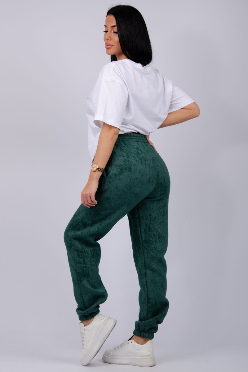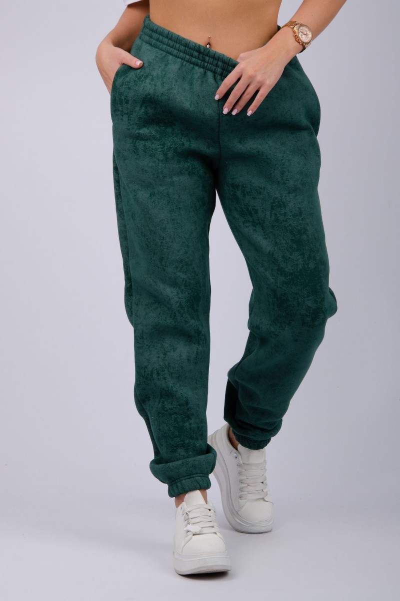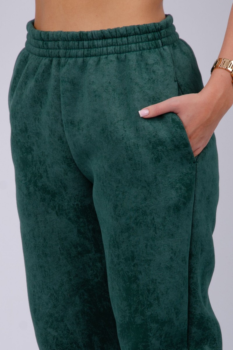 Джоггеры женские "Мистерия 3" футер 3-х нитка с начесом (последний размер) изумруд 48