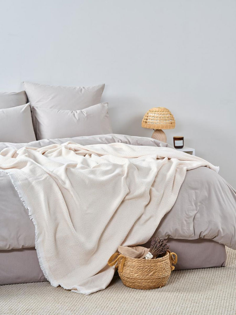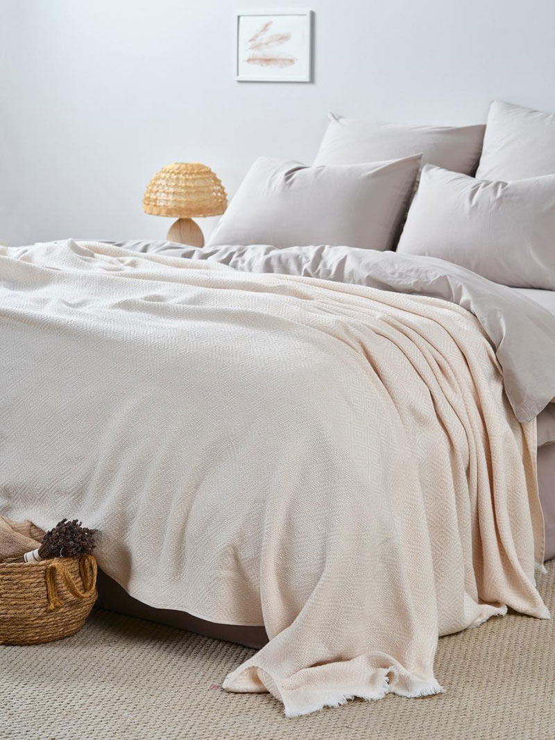 Представляем хлопковое покрывало. Оно гипоаллергенно, хорошо регулирует температуру и пропускает воздух. Ткань не выгорает на солнце, легко стирается и не мнется. Покрывало прочное и износостойкое, сохраняет яркость и внешний вид даже после множества стирок. Отлично подходит для использования в качестве как в качестве пледа, так и покрывала.