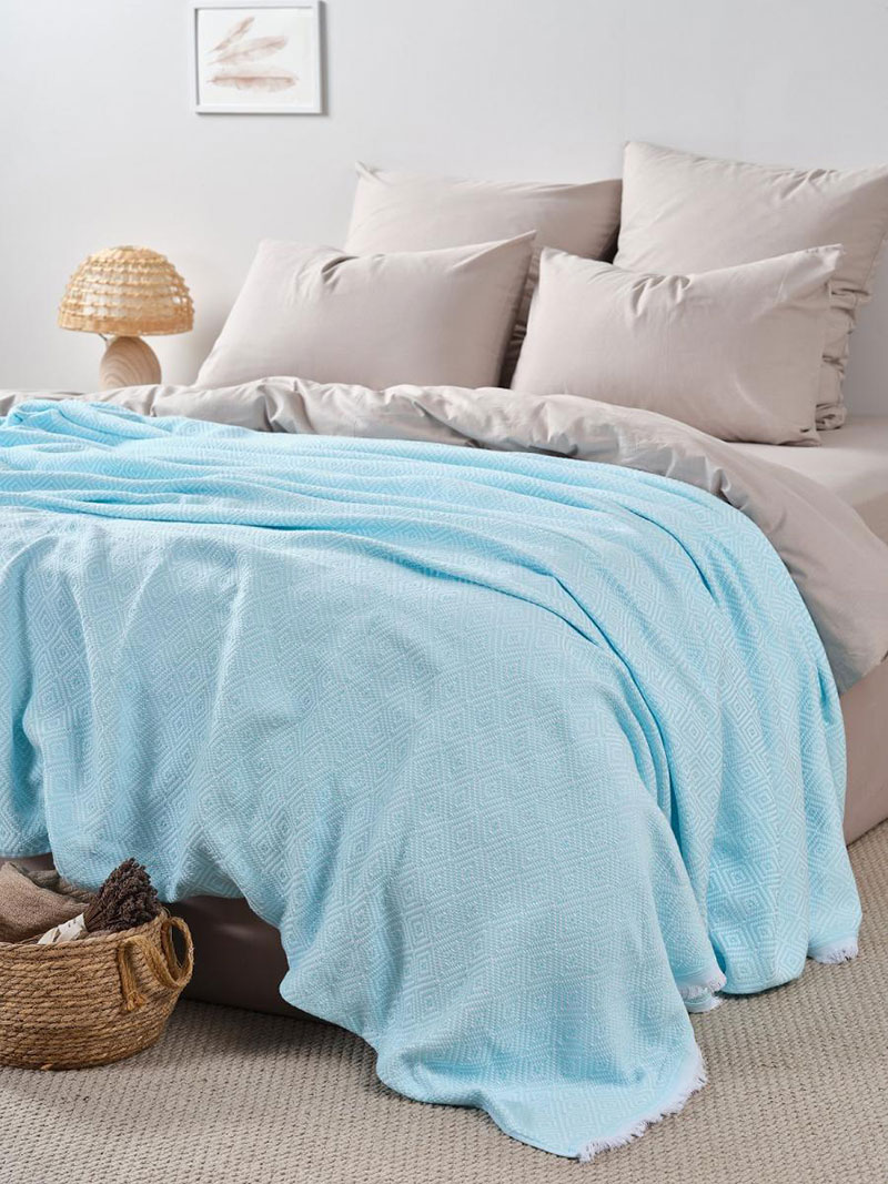 Покрывало-плед хлопковое "Голубой"