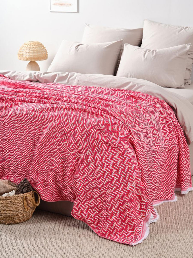 Покрывало-плед хлопковое "Красный"