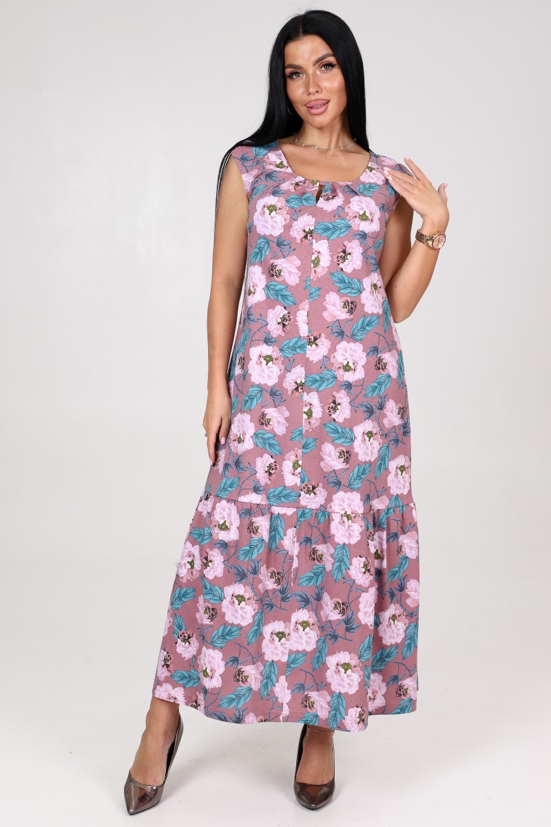 Представляем Вашему вниманию женское платье с цветочным рисунком из трикотажного полотна - 100% хлопок. Благодаря оригинальному крою, платье изумительно садится по фигуре. Верх платья отделан несколькими складками и между ними сделана маленькая щелка, которая есть на плечах и горловине платья. Юбка шикарная, на сборке, не стесняет движений. Красивое летнее платье, дышащее и комфортное для повседневной носки, дома, пляжа, праздника, прогулок. Идеально будет для любого роста - на высоких, средних, низких. Современное, стильное, модное, элегантное платье на любой возраст.