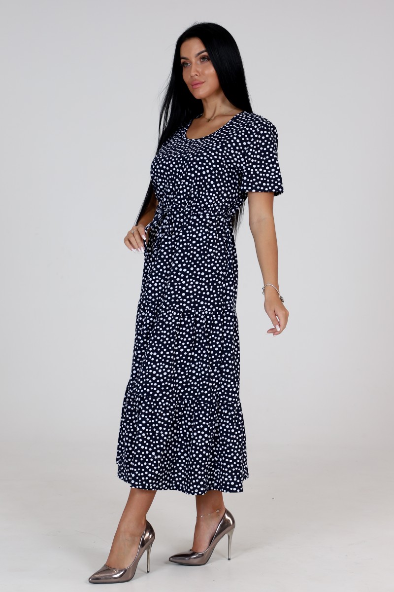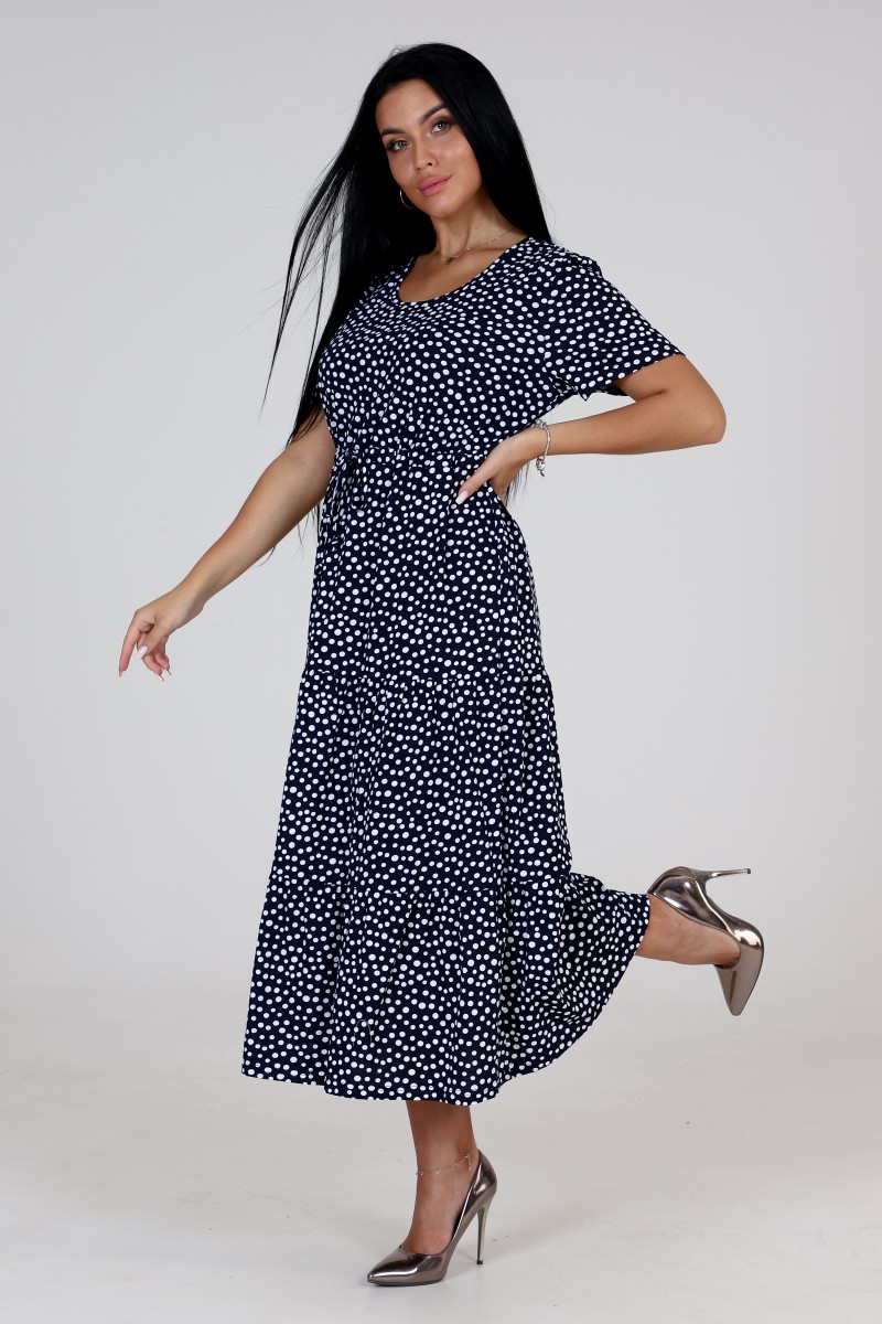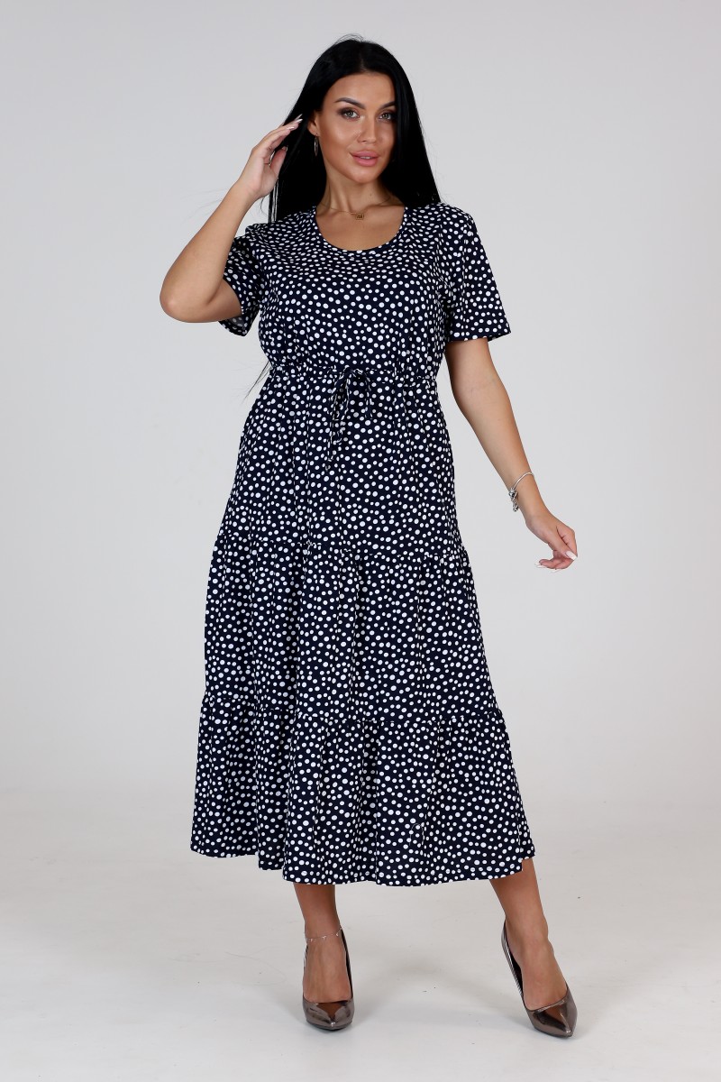 Платье женское "Каскад" ПлК-35 кулирка (последний размер) пьян.горох на т.син. 48,52