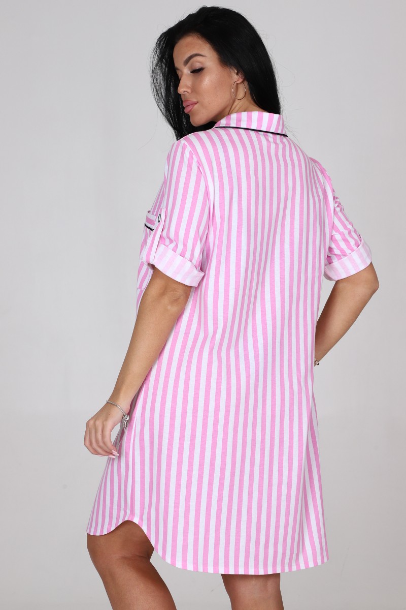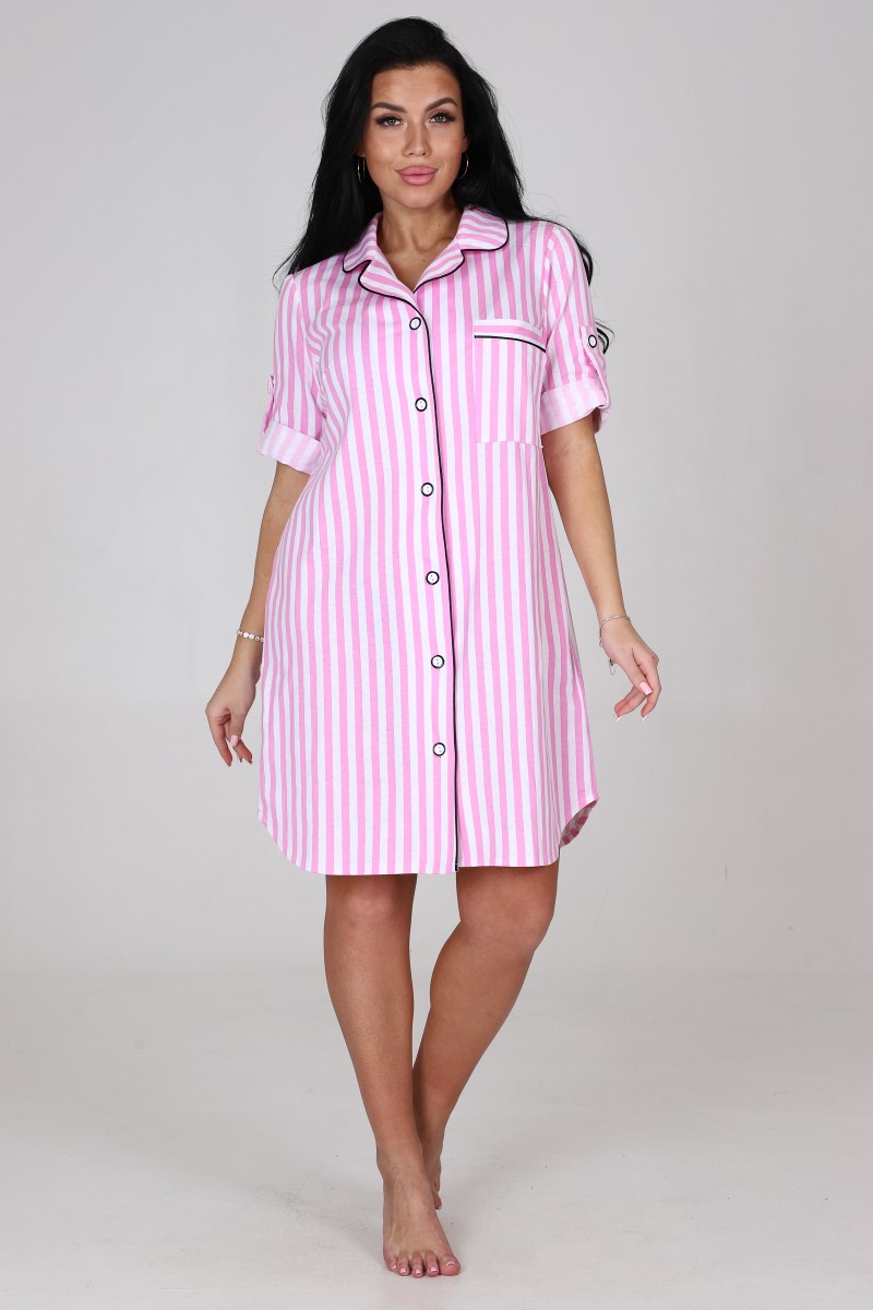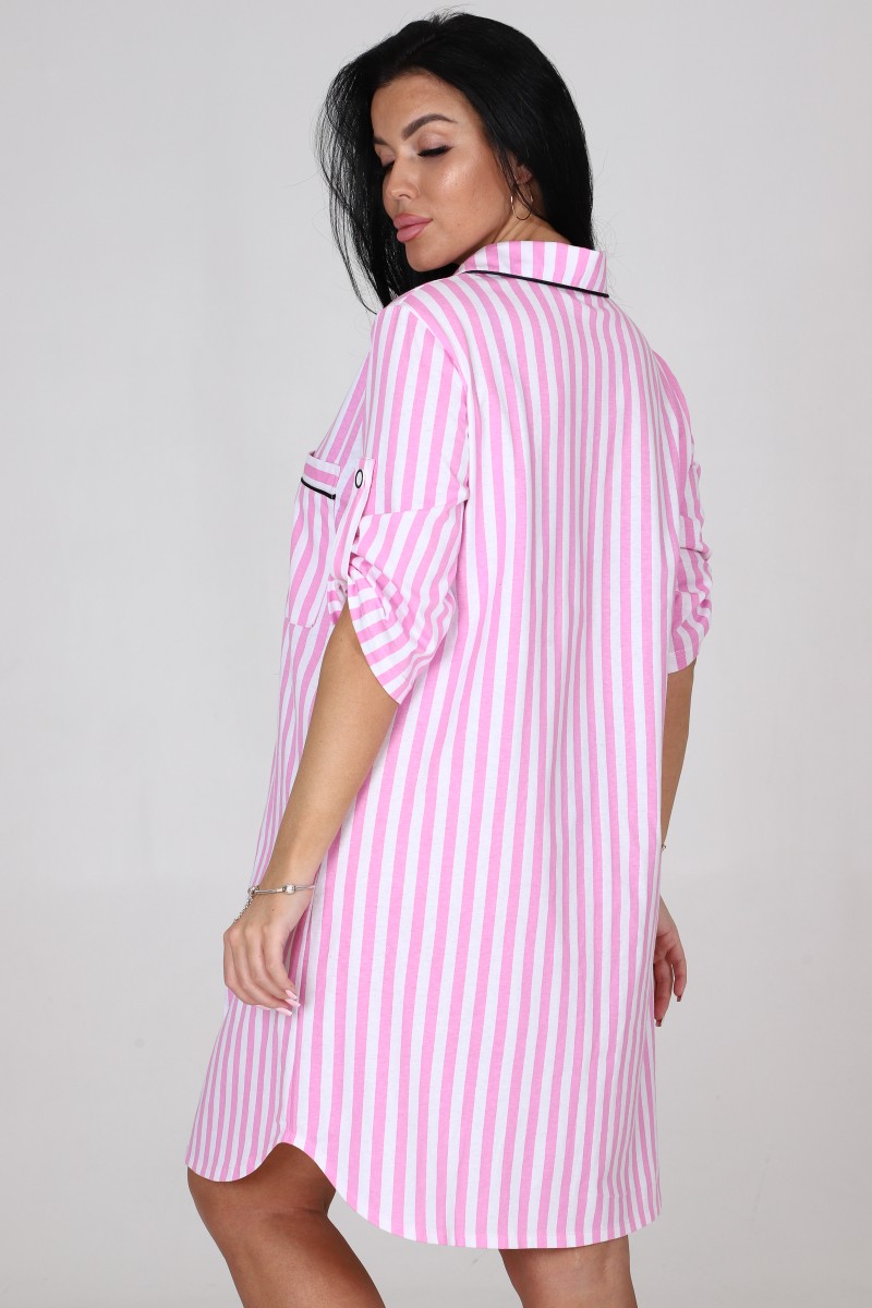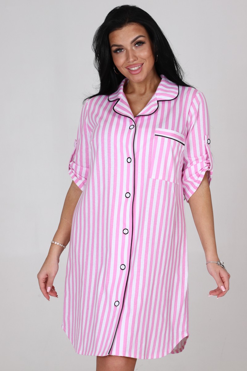Халат женский "Мила" ХК-1962 кулирка (последний размер) розово-белая полоса 54