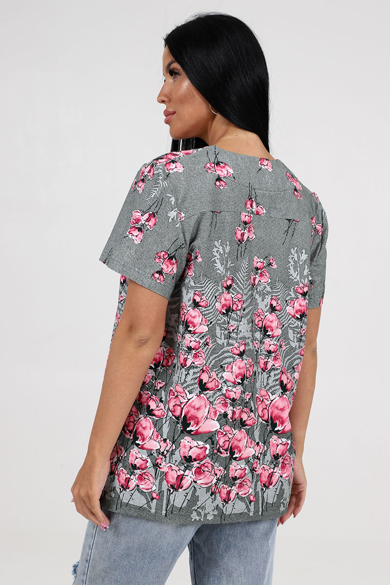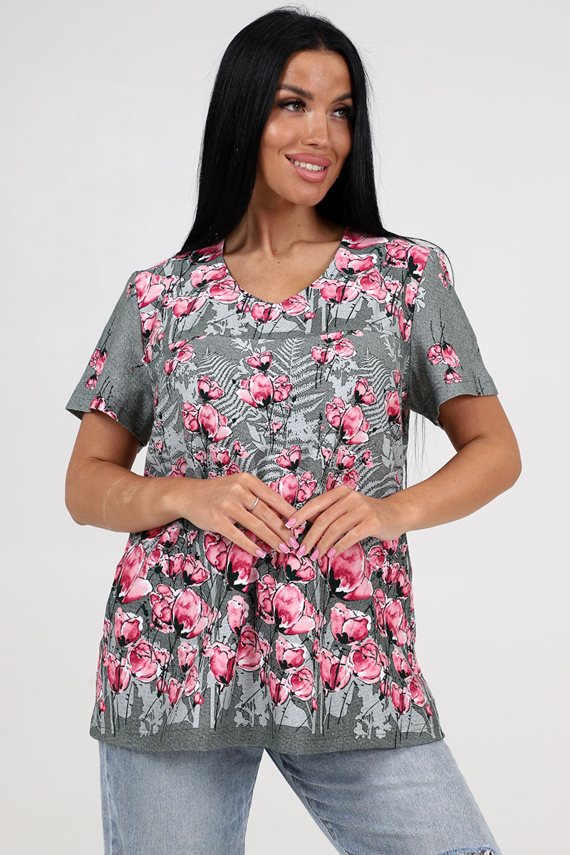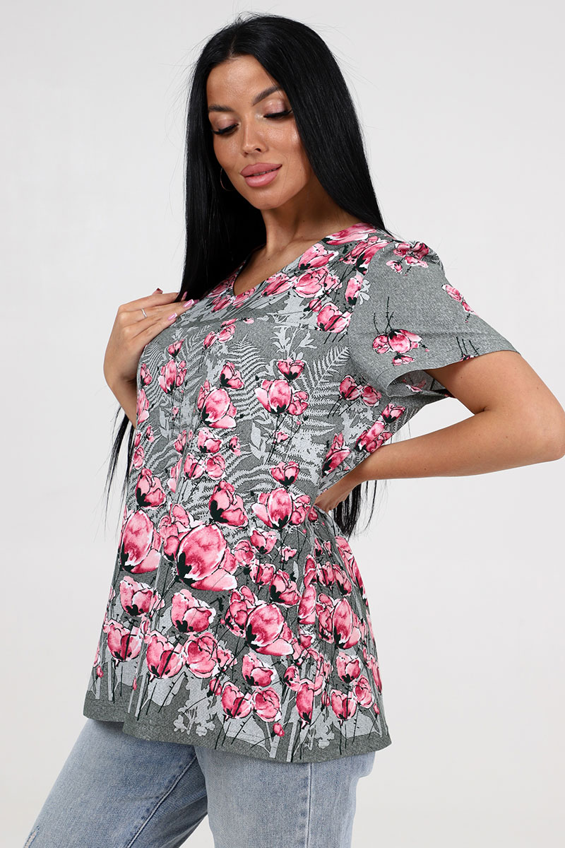 Туника женская "Блюз" ТК-72-ФУТ кулирка (последний размер) хаки и розовые маки 50,54