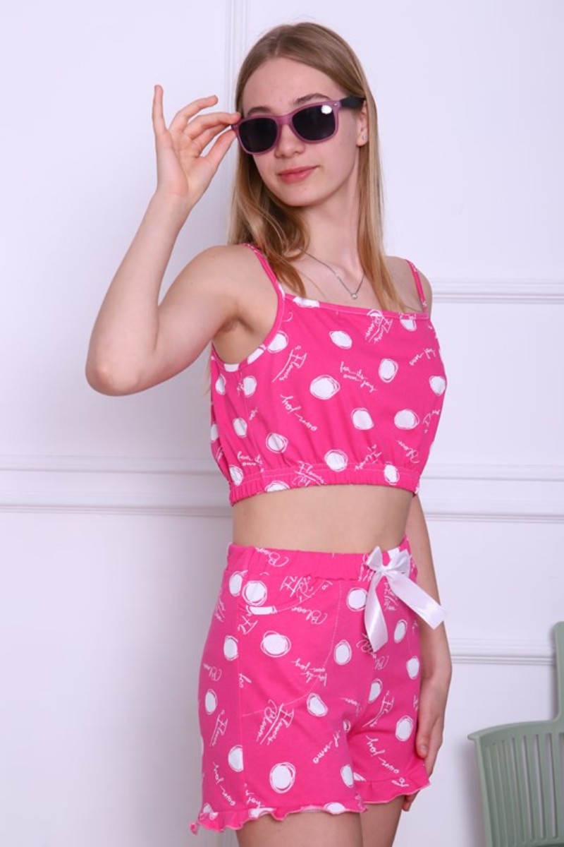Представляем Вашему вниманию легкую женскую пижаму из кулирки - 100% натурального, дышащего хлопка. Комплект имеет интересную расцветку, которая красиво смотрится и поднимает настроение. Пижама хорошо сидит на фигуре и подчеркивает её достоинства. В ней Ваш сон будет максимально приятным и расслабляющим.