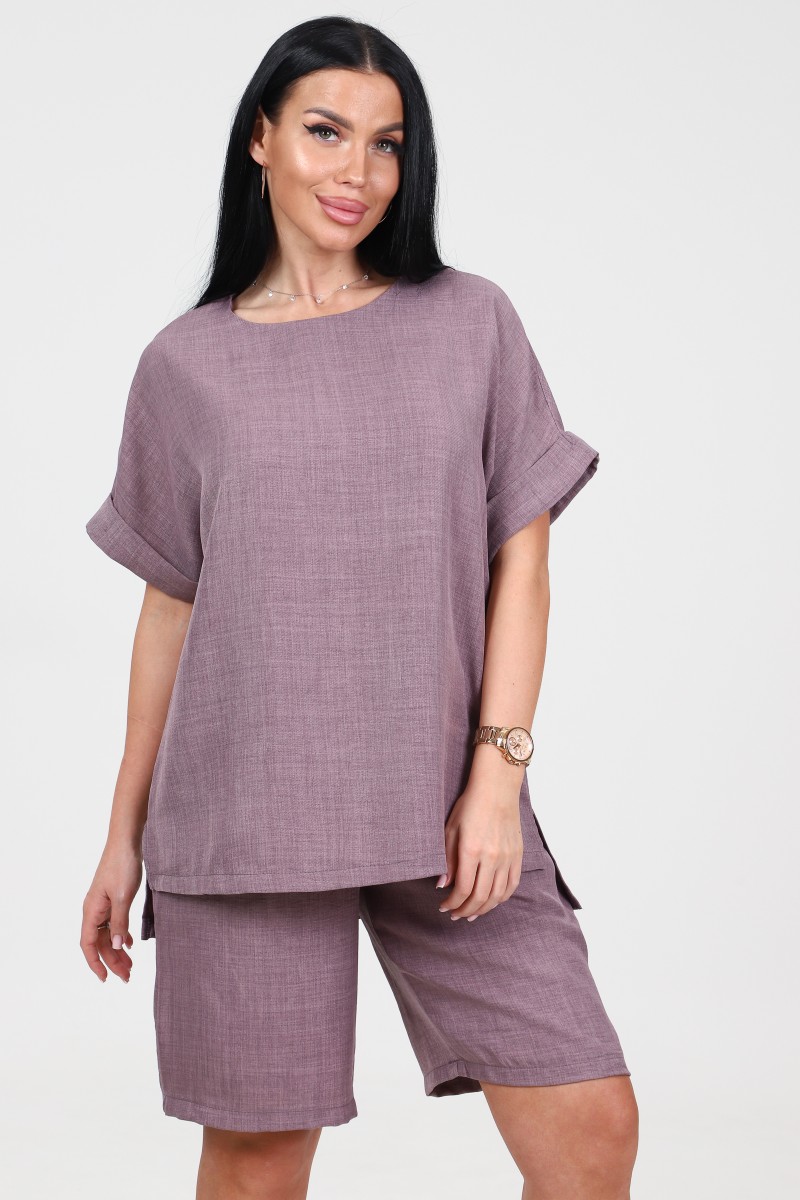 Костюм двойка женский КЛ-2639 "Шик" имитация льна (последний размер) капучино 50