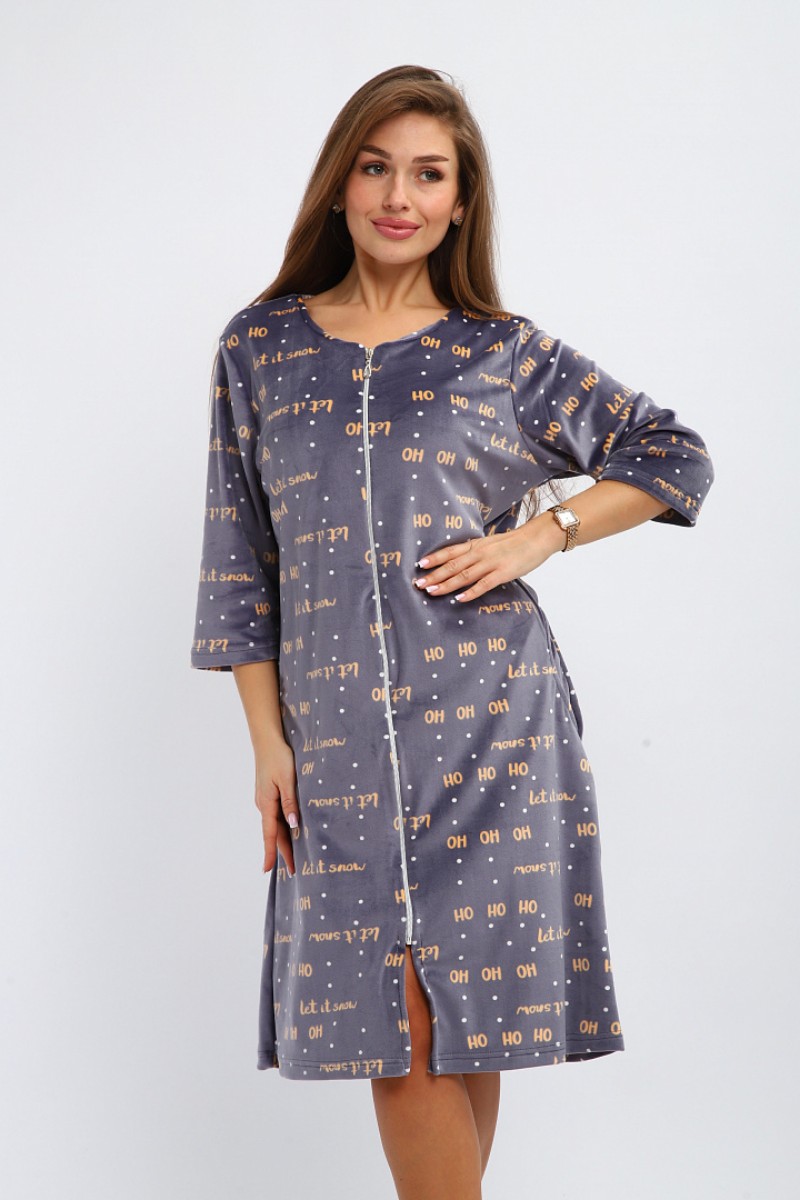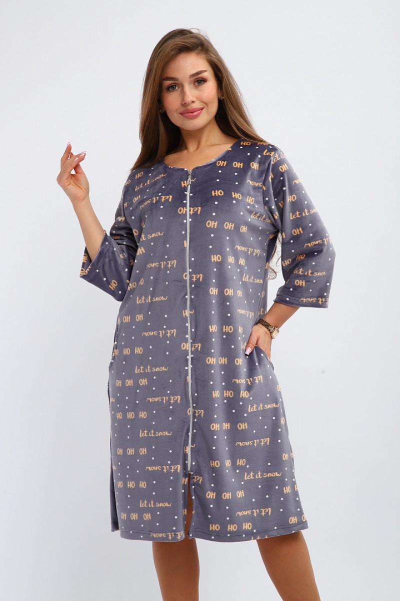 Представляем Вашему вниманию женский халат из трикотажного полотна стрейч велюр. Халат полуприлегающего силуэта, рукав втачной 3/4, карманы в боковых швах, застежка на молнию. Комфортный и стильный наряд для домашнего отдыха!