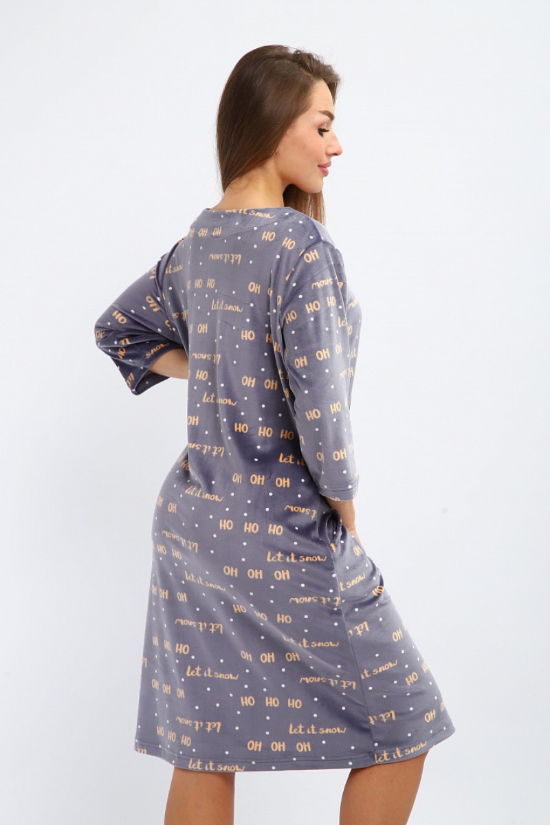 Халат женский №194 стрейч велюр (р-ры: 48-58) серый