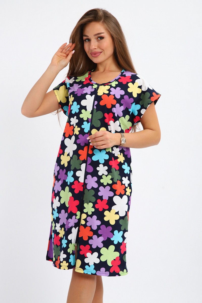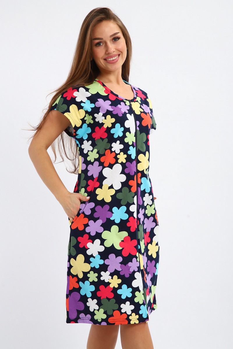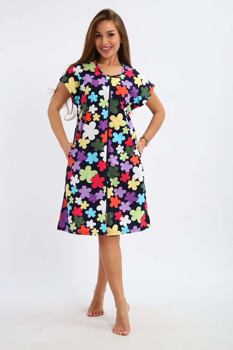 Представляем Вашему вниманию легкий женский халат, сшитый из натуральной, приятной телу кулирки - 100% хлопок, позволяющий коже дышать. Расцветка изделия красиво смотрится и поднимает настроение. В нём Вы будете чувствовать себя комфортно и уверенно.