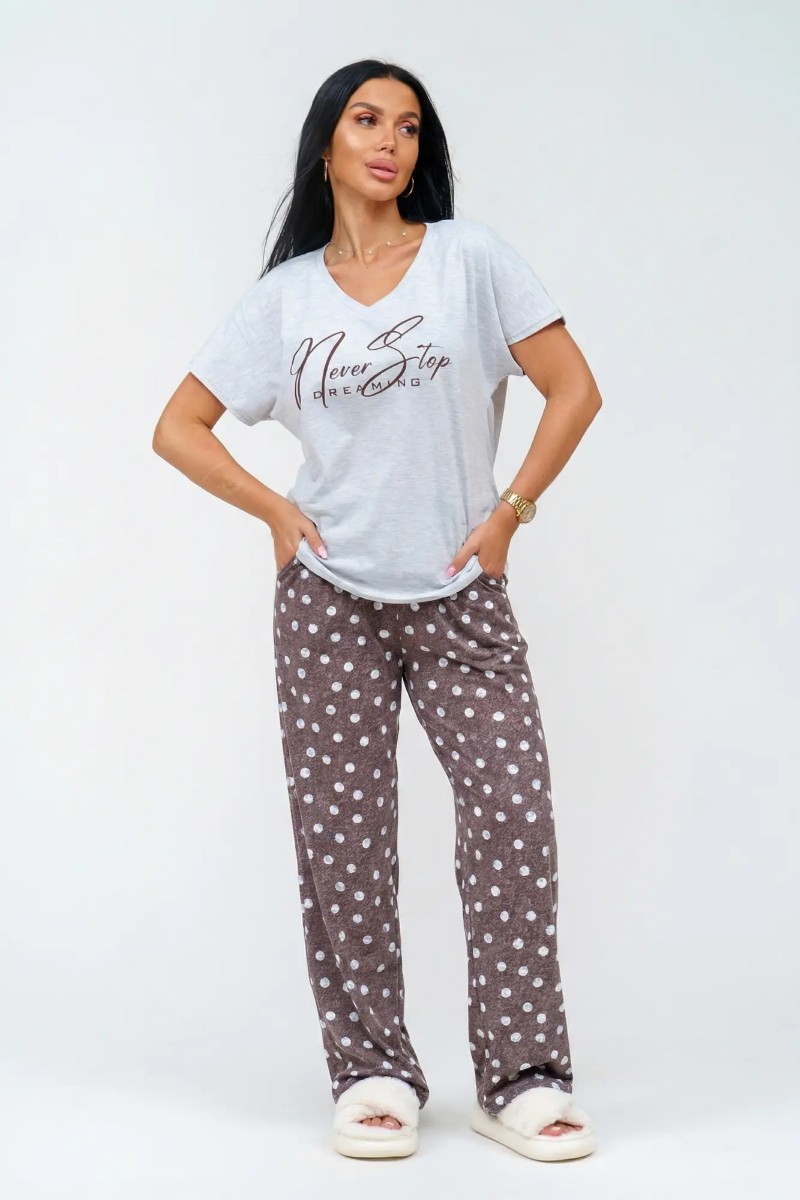 Пижама женская "Фиеста" кулирка (р-ры: 48-58) горох