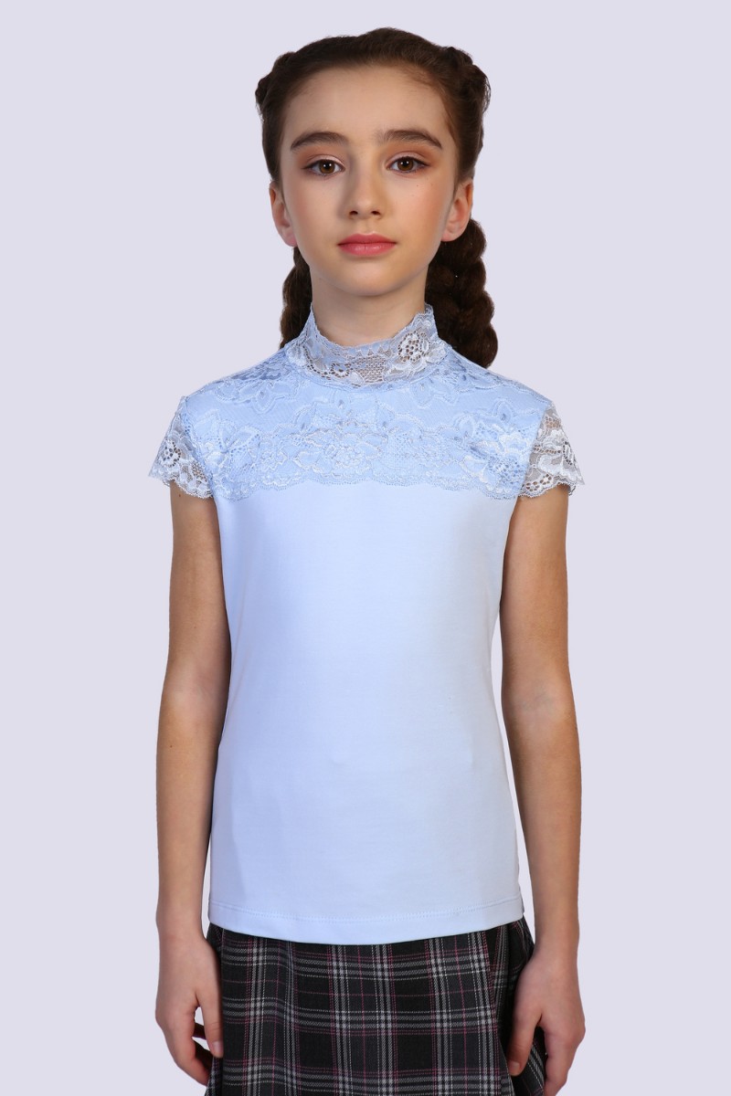 Блузка школьная №13151 "Надежда" кулирка с лайкрой (р-ры: 122-164) светло-голубой
