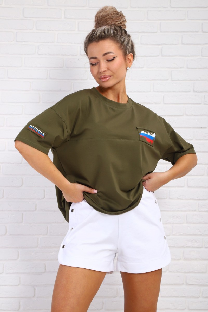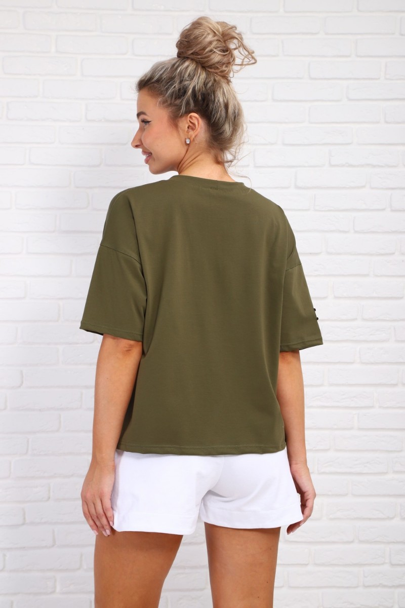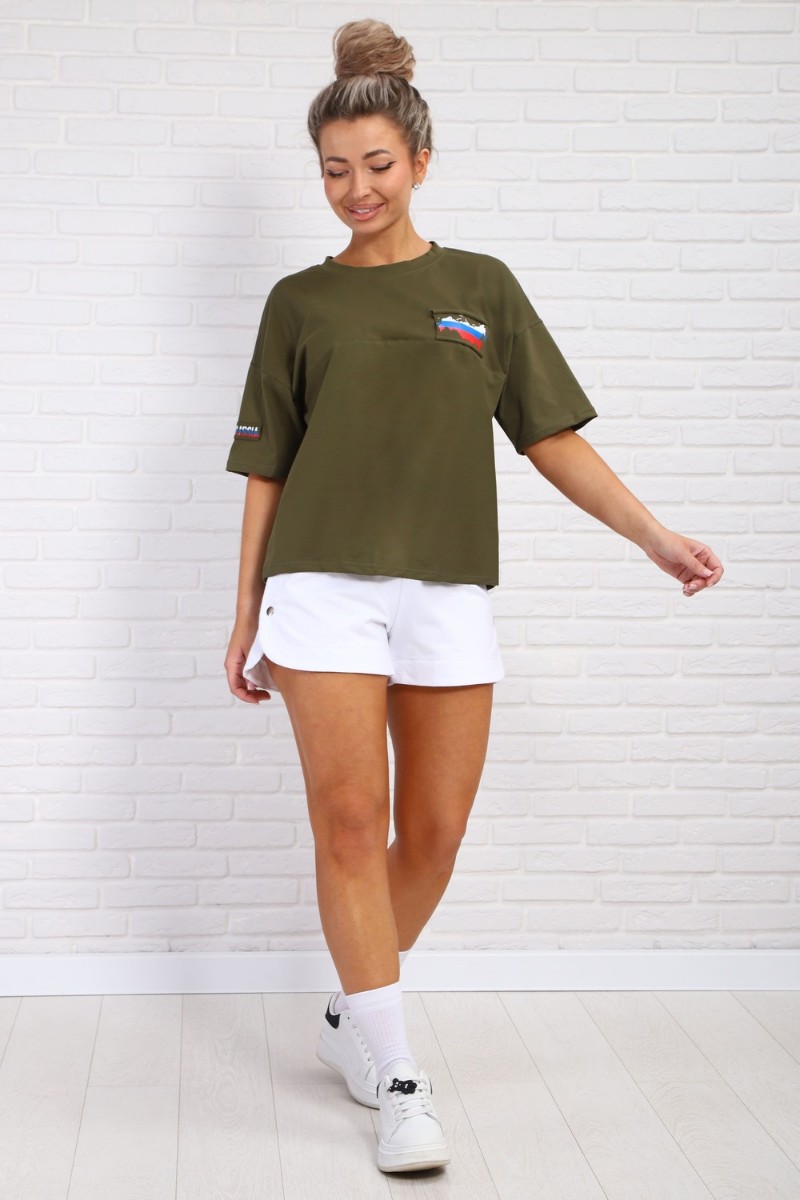 Футболка женская №84305 кулирка с лайкрой (р-ры: 46-56) хаки