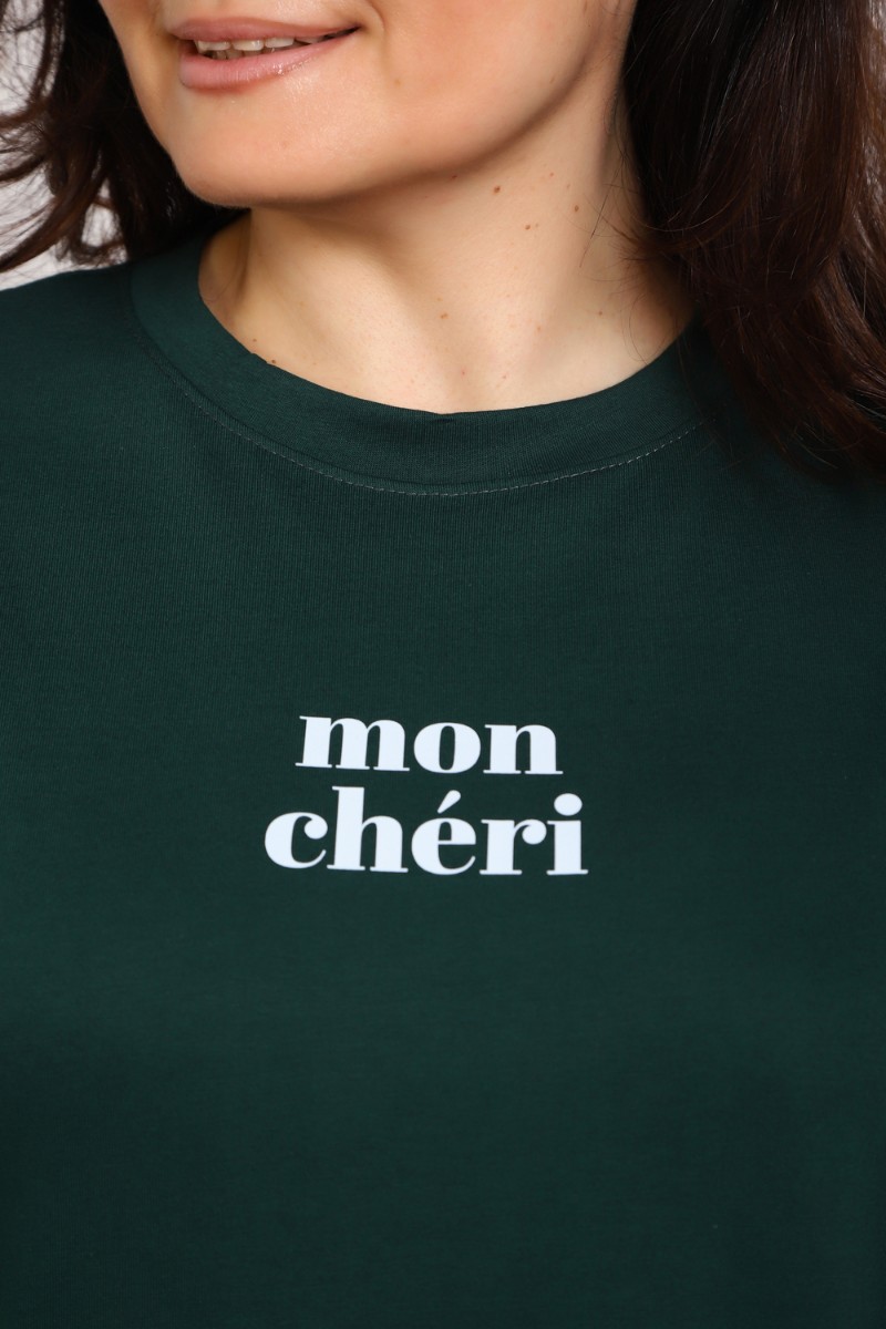 Представляем Вашему вниманию женскую тунику, сшитую из легкой и приятной к телу кулирки, состоящей из натуральных волокон хлопчатобумажной ткани (95%) и небольшой доли эластичного волокна лайкры (5%), придающего изделию дополнительную упругость и стойкость к деформации. Благодаря свободному покрою и прямым линиям силуэта эта модель идеально подходит для ежедневного комфортного ношения, даря ощущение свободы и легкость движений. Классические короткие рукава и простой круглый вырез позволяют сочетать укороченную тунику практически с любым низом, будь то джинсы, юбки или брюки. Главным украшением служит изысканный минималистичный принт на груди с очаровательной французской надписью "Mon Cheri", нежно украшающей этот базовый предмет гардероба и добавляя образу особый шарм. Специально разработанный сдвоенный размер обеспечивает прекрасную посадку на разные типы фигур, позволяя насладиться удобством и красотой изделия каждому покупателю.