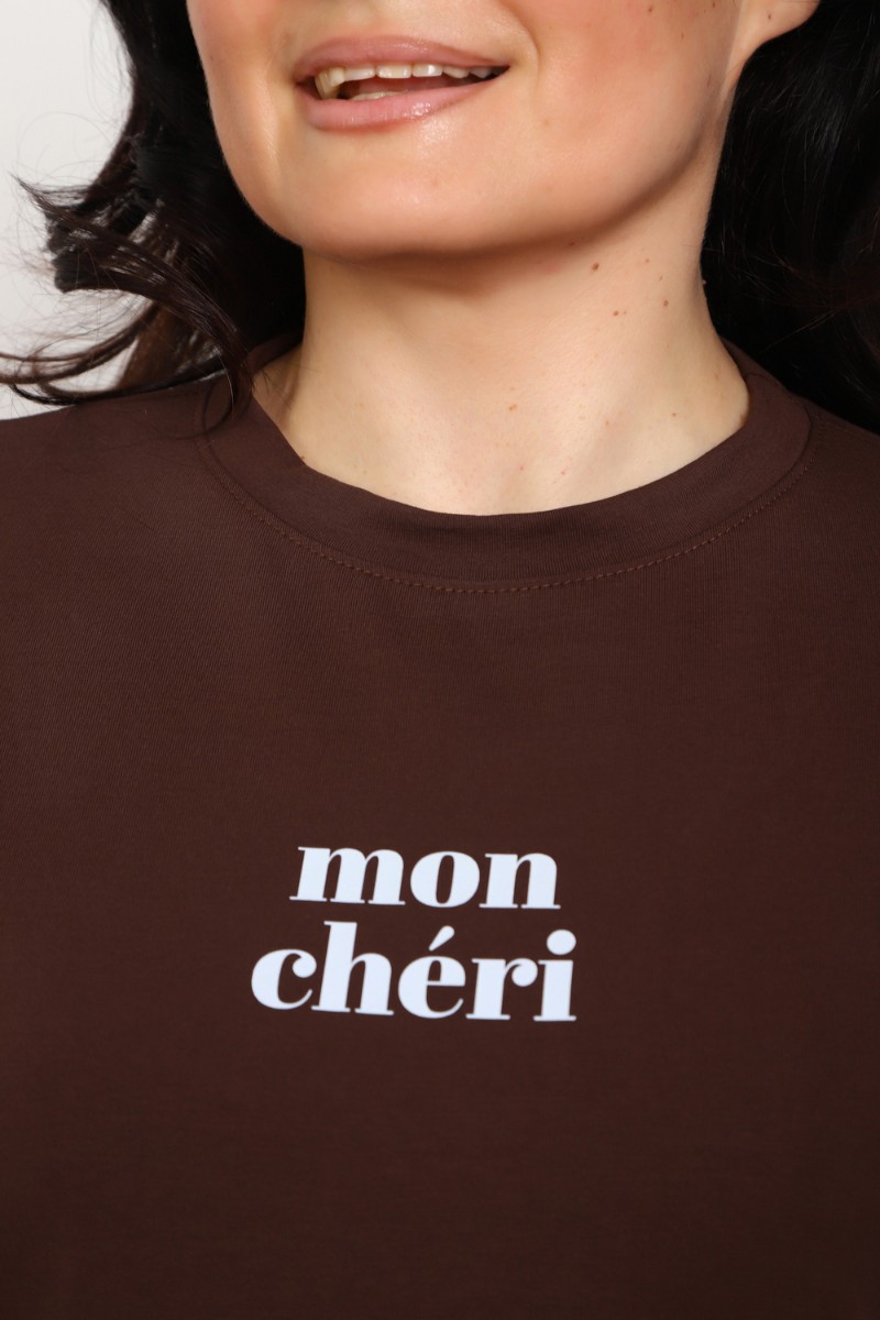 Представляем Вашему вниманию женскую тунику, сшитую из легкой и приятной к телу кулирки, состоящей из натуральных волокон хлопчатобумажной ткани (95%) и небольшой доли эластичного волокна лайкры (5%), придающего изделию дополнительную упругость и стойкость к деформации. Благодаря свободному покрою и прямым линиям силуэта эта модель идеально подходит для ежедневного комфортного ношения, даря ощущение свободы и легкость движений. Классические короткие рукава и простой круглый вырез позволяют сочетать укороченную тунику практически с любым низом, будь то джинсы, юбки или брюки. Главным украшением служит изысканный минималистичный принт на груди с очаровательной французской надписью "Mon Cheri", нежно украшающей этот базовый предмет гардероба и добавляя образу особый шарм. Специально разработанный сдвоенный размер обеспечивает прекрасную посадку на разные типы фигур, позволяя насладиться удобством и красотой изделия каждому покупателю.