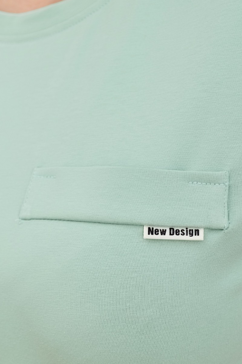 Представляем Вашему вниманию женскую футболку из гладкокрашеного трикотажного полотна «кулирка с лайкрой», прямого кроя, с короткими втачными рукавами, горловиной овальной формы, обработанной втачной планкой. На полочке настрочена планка имитирующая вход в карман с декоративной нашивкой.