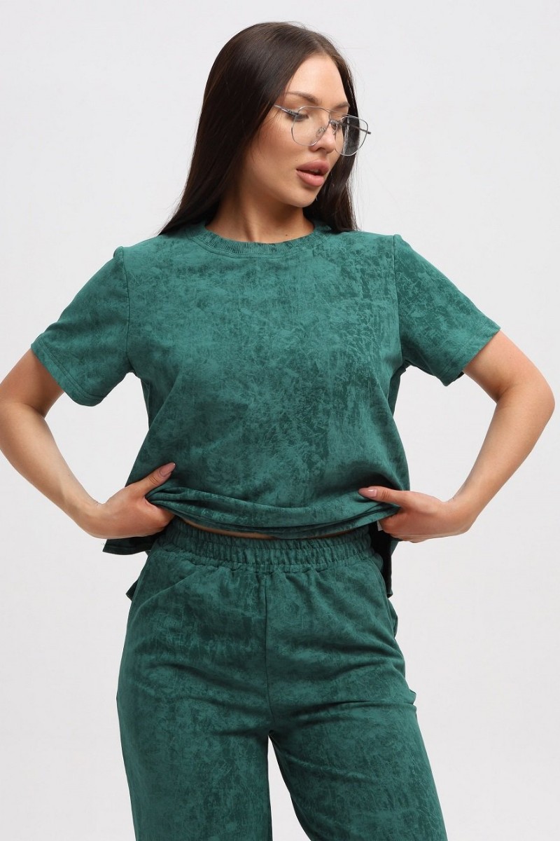 Костюм двойка женский 729 футер 2-х нитка пенье (р-ры: 44-54) зеленый-варенка