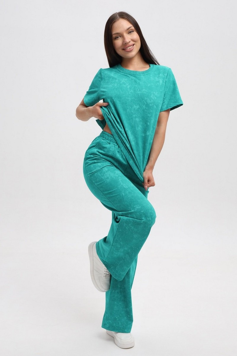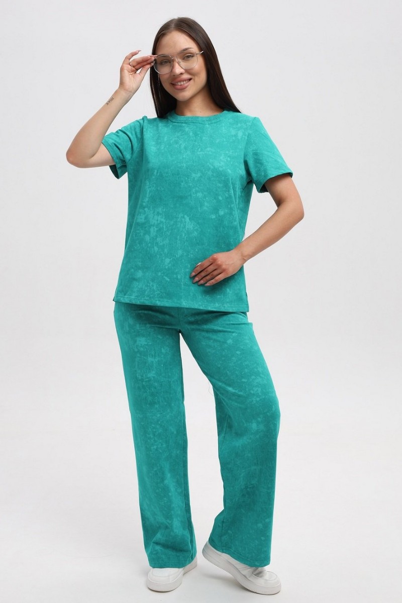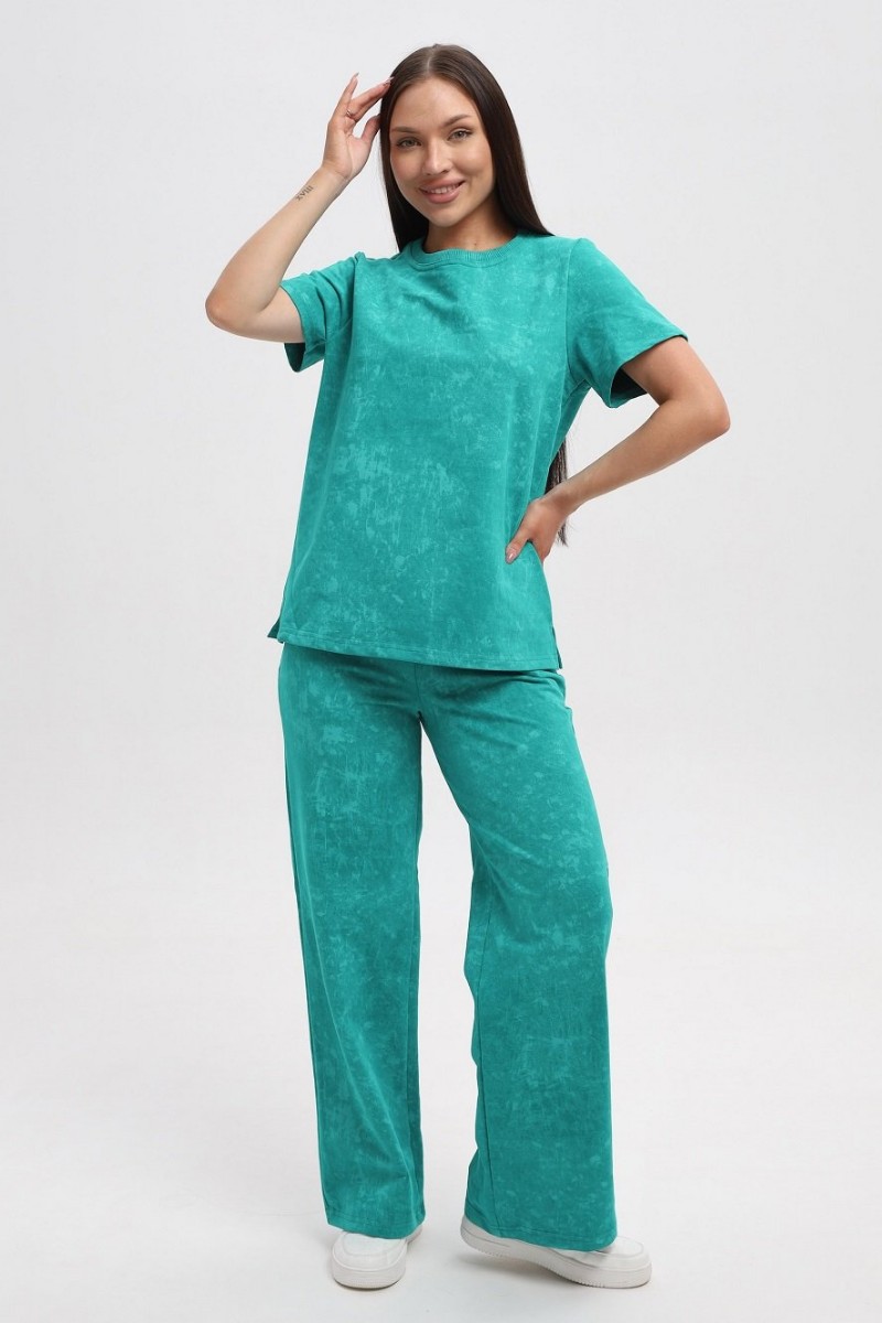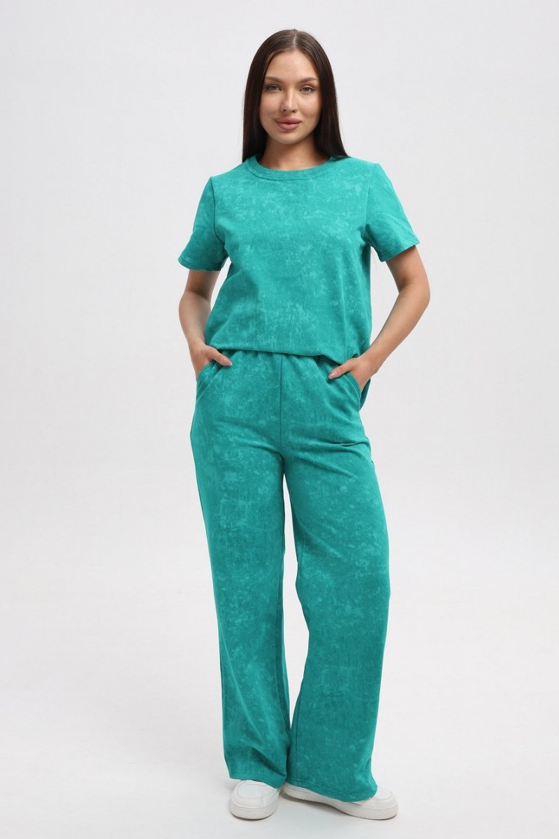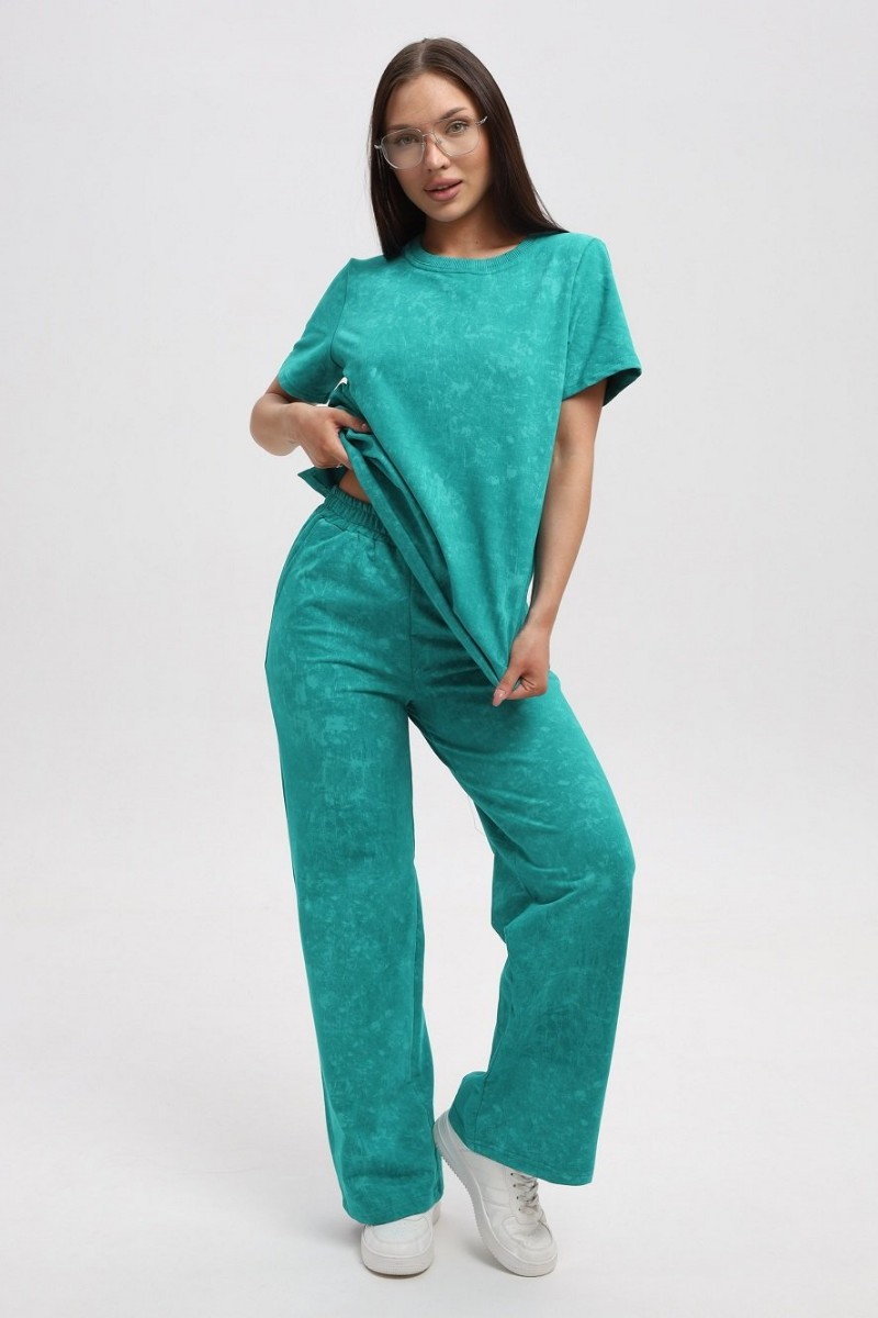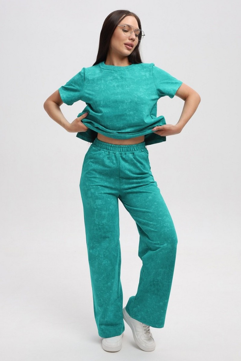 Костюм двойка женский 729 футер 2-х нитка пенье (р-ры: 44-54) изумрудный-варенка