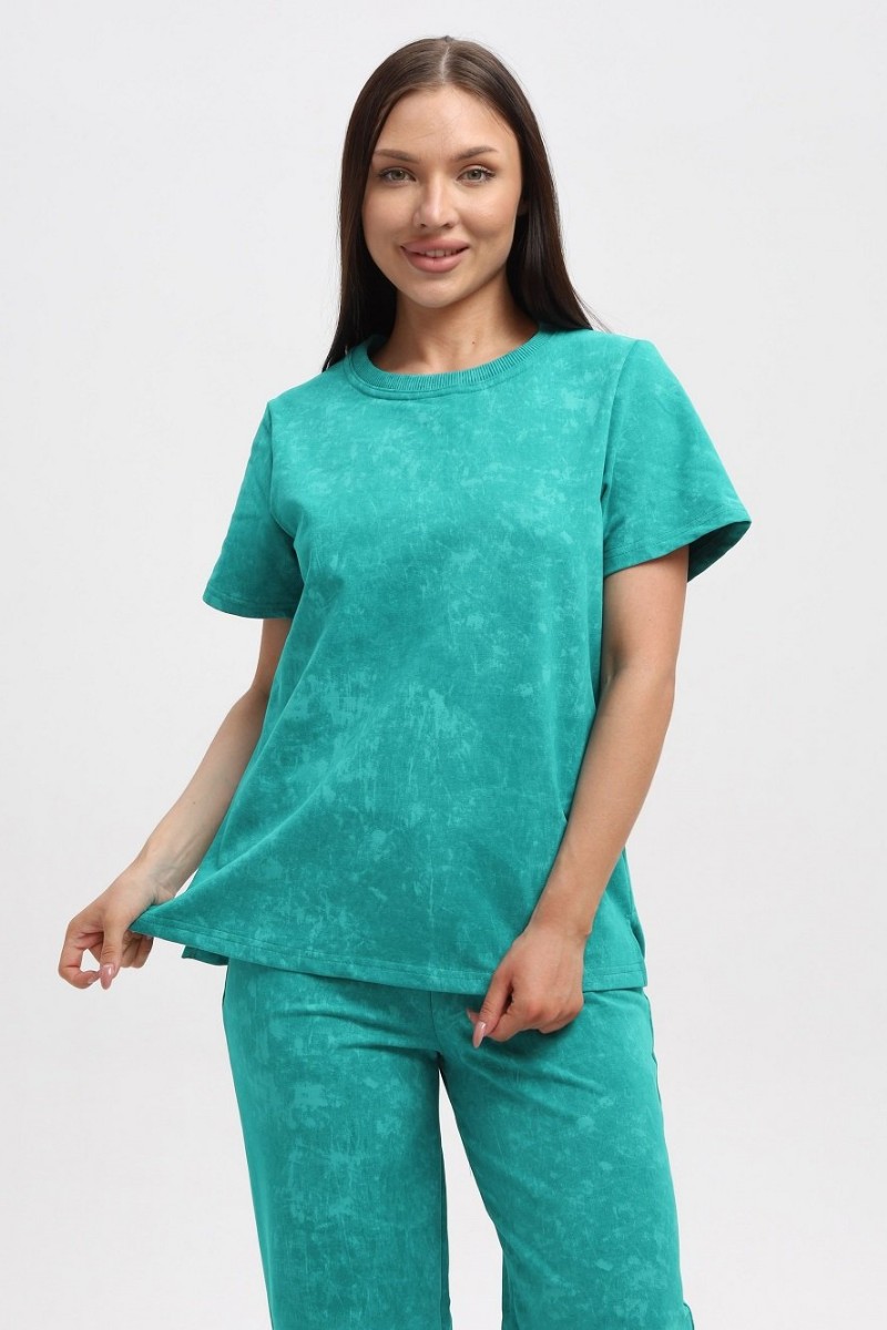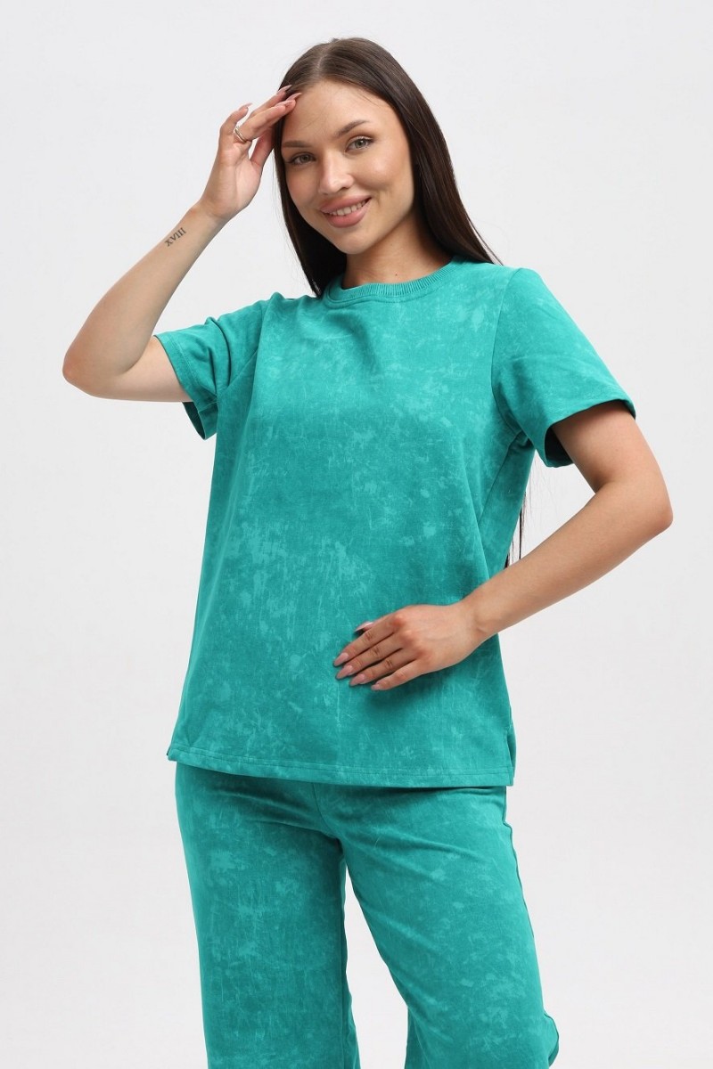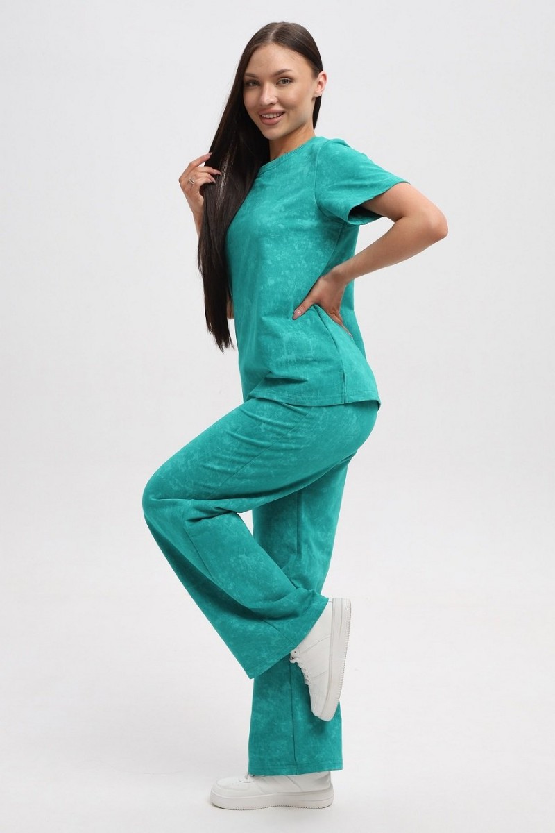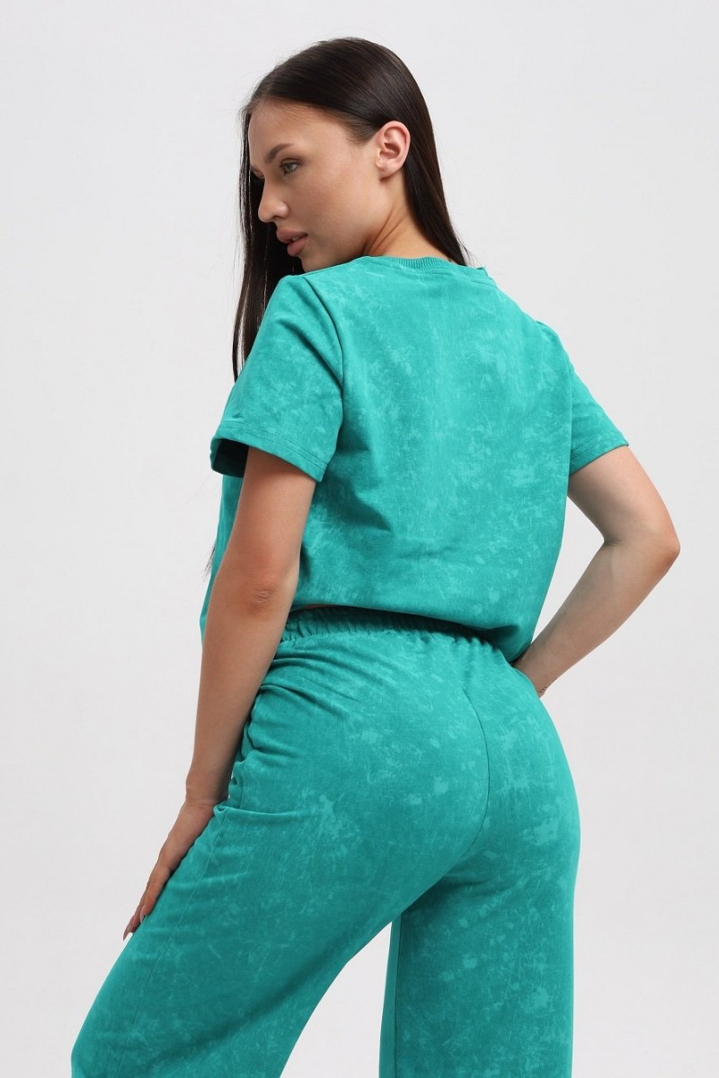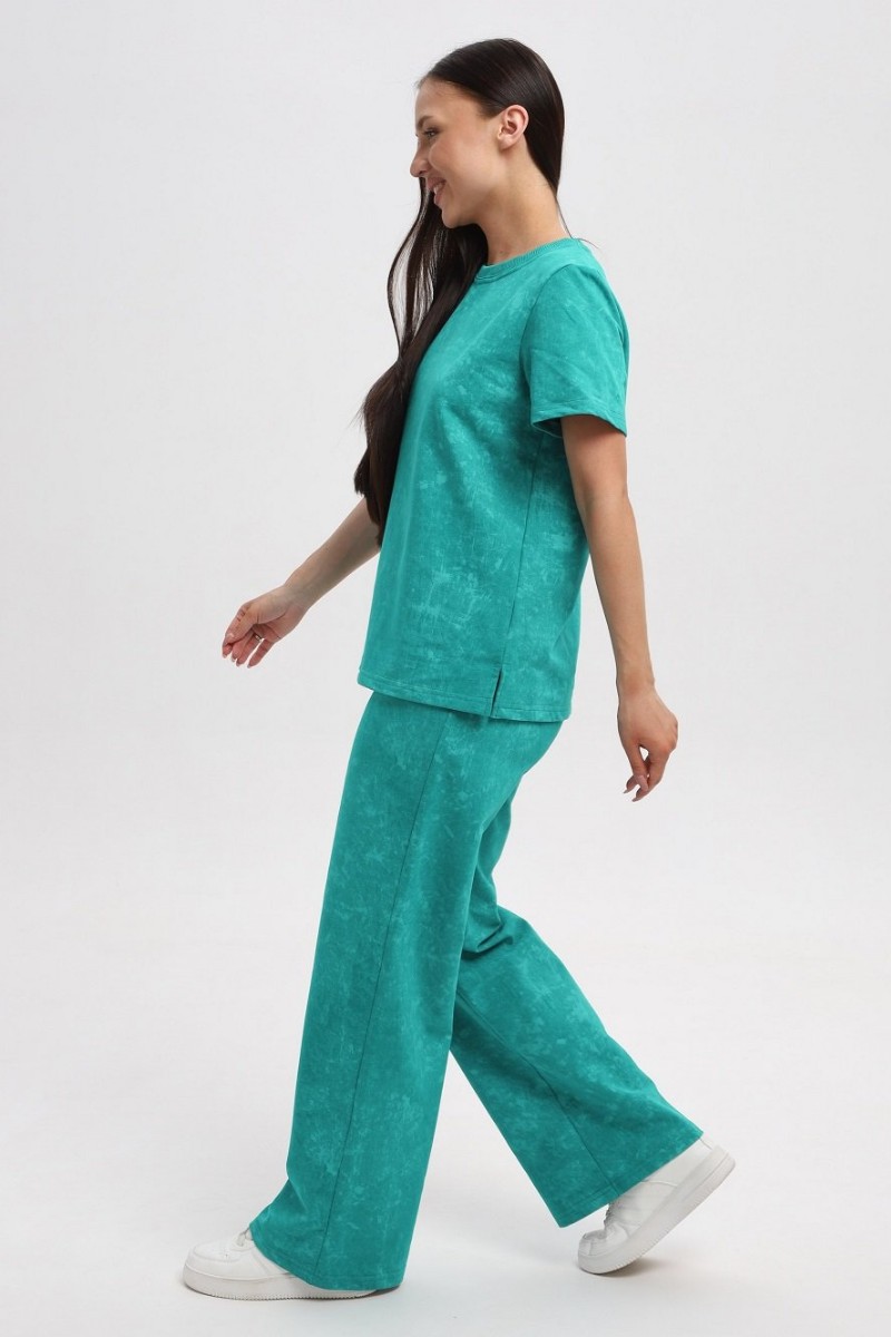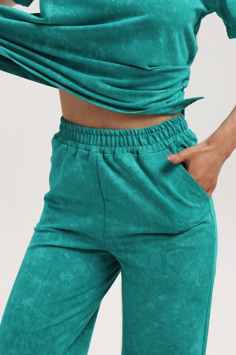 Костюм двойка женский 729 футер 2-х нитка пенье (р-ры: 44-54) изумрудный-варенка