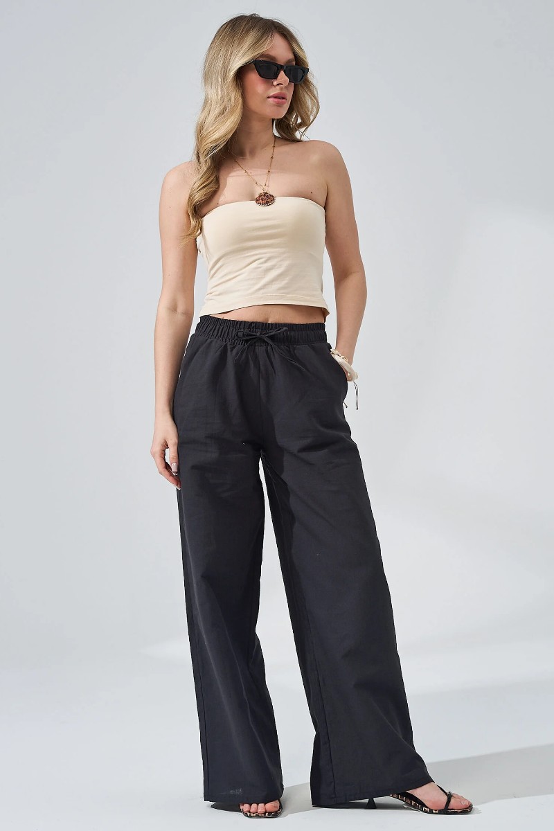 Брюки женские "Льняная палитра" 2473-П/л хлопок-лён (р-ры: 44-54) чёрный
