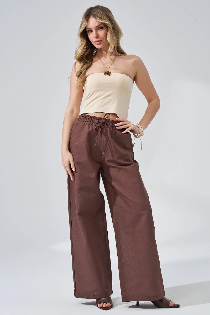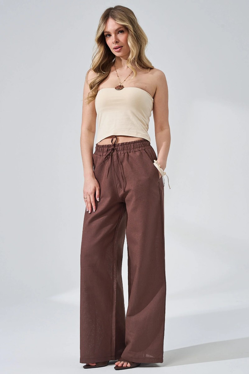 Брюки женские "Льняная палитра" 2473-П/л хлопок-лён (р-ры: 44-54) мокко