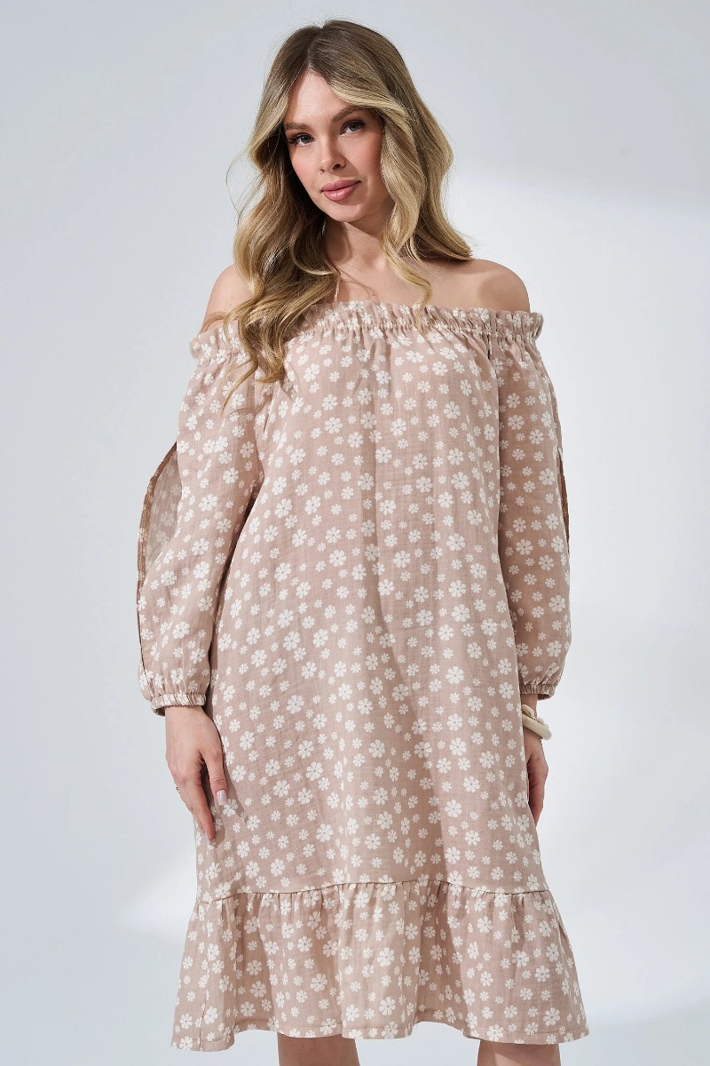 Платье женское "Романтика" 2474-Мус муслин (р-ры: 44-50) бежевый