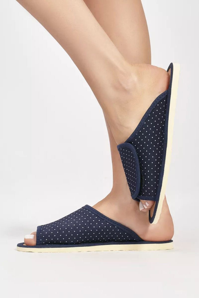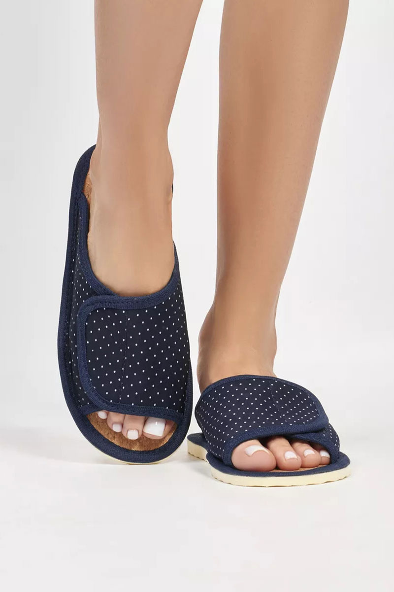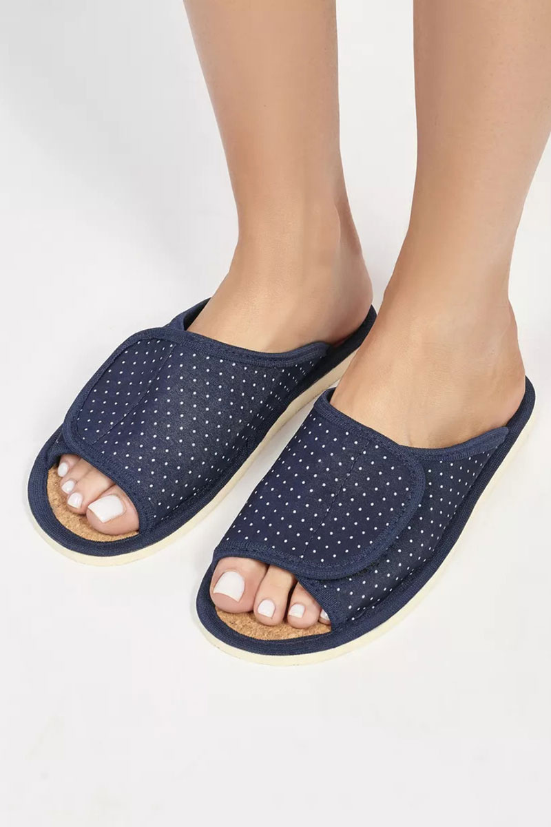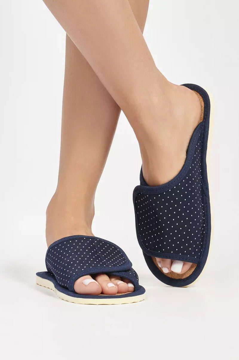 Представляем Вашему вниманию легкие домашние женские тапочки. Их можно предложить своим гостям, или взять с собой на отдых, в дорогу. А как приятно после тяжелого рабочего дня переобуться в тапочки с комфортной посадкой по ноге! Благодаря липучке они подходят на стопу с любой полнотой и подъёмом! Тапочки с открытым мыском не натирают ноги. Верхняя часть домашних тапок выполнена из качественного текстиля, который легко пропускает воздух. В таких тапочках нога не потеет и не скользит. Стелька выполнена из качественной пробки, благодаря которой их очень комфортно носить как с носком, так и на босу ногу! Они спасают от холодного и мокрого пола. Подошва изготовлена из ЭВА, это легкий, упругий, эластичный и износостойкий материал. Все швы качественно обработаны производителем. Классическая модель подойдет для носки в любое время года: в осенний, весенний и летний, в зимний период, будет удобна в качестве домашних комнатных, дачных или рабочих.