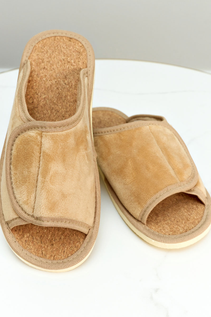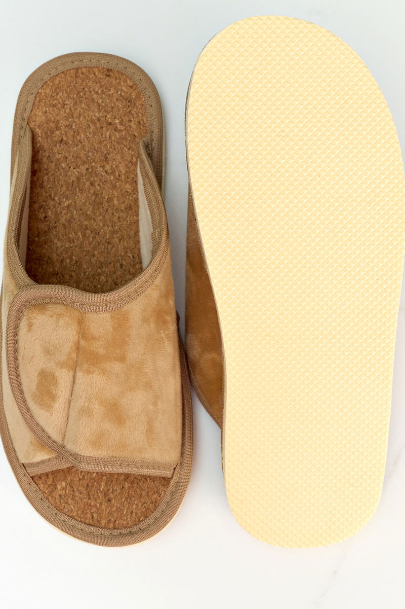 Представляем Вашему вниманию легкие домашние женские тапочки. Их можно предложить своим гостям, или взять с собой на отдых, в дорогу. А как приятно после тяжелого рабочего дня переобуться в тапочки с комфортной посадкой по ноге! Благодаря липучке они подходят на стопу с любой полнотой и подъёмом! Тапочки с открытым мыском не натирают ноги. Верхняя часть домашних тапок выполнена из качественного текстиля, который легко пропускает воздух. В таких тапочках нога не потеет и не скользит. Стелька выполнена из качественной пробки, благодаря которой их очень комфортно носить как с носком, так и на босу ногу! Они спасают от холодного и мокрого пола. Подошва изготовлена из ЭВА, это легкий, упругий, эластичный и износостойкий материал. Все швы качественно обработаны производителем. Классическая модель подойдет для носки в любое время года: в осенний, весенний и летний, в зимний период, будет удобна в качестве домашних комнатных, дачных или рабочих.