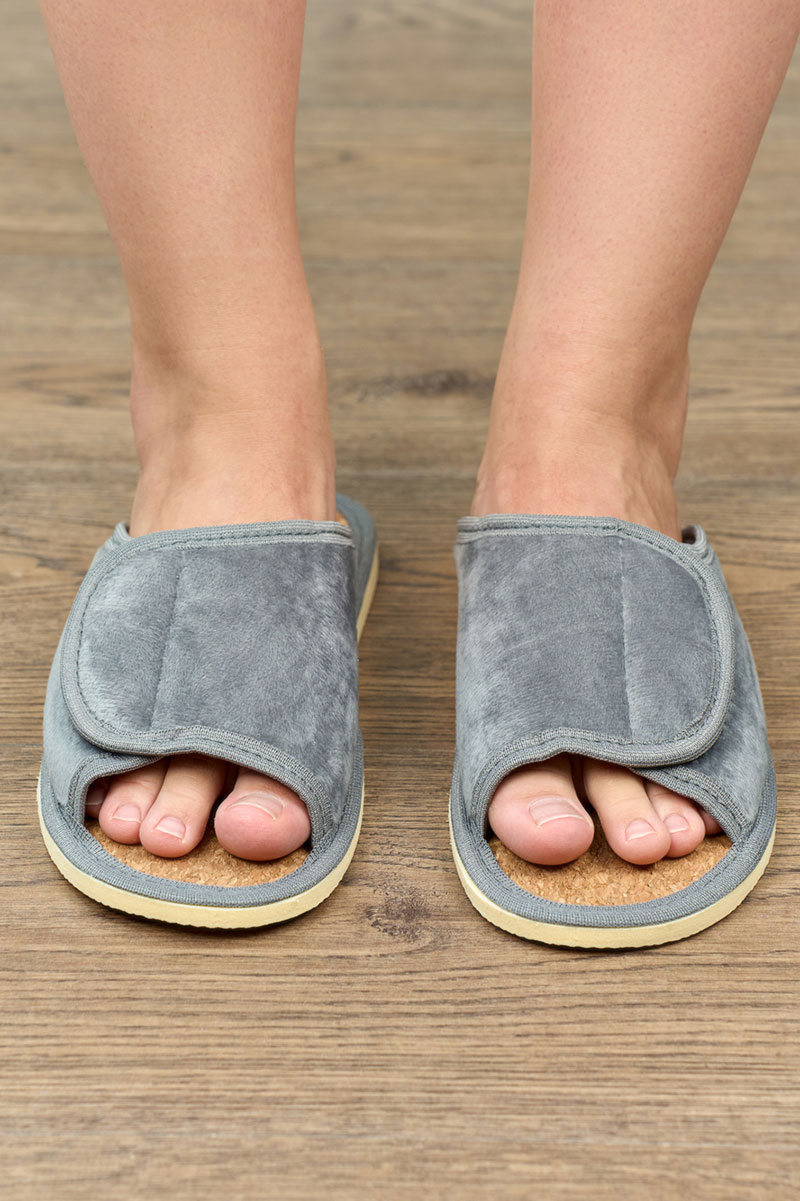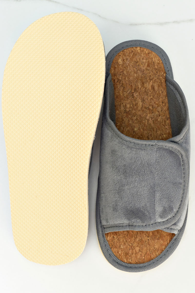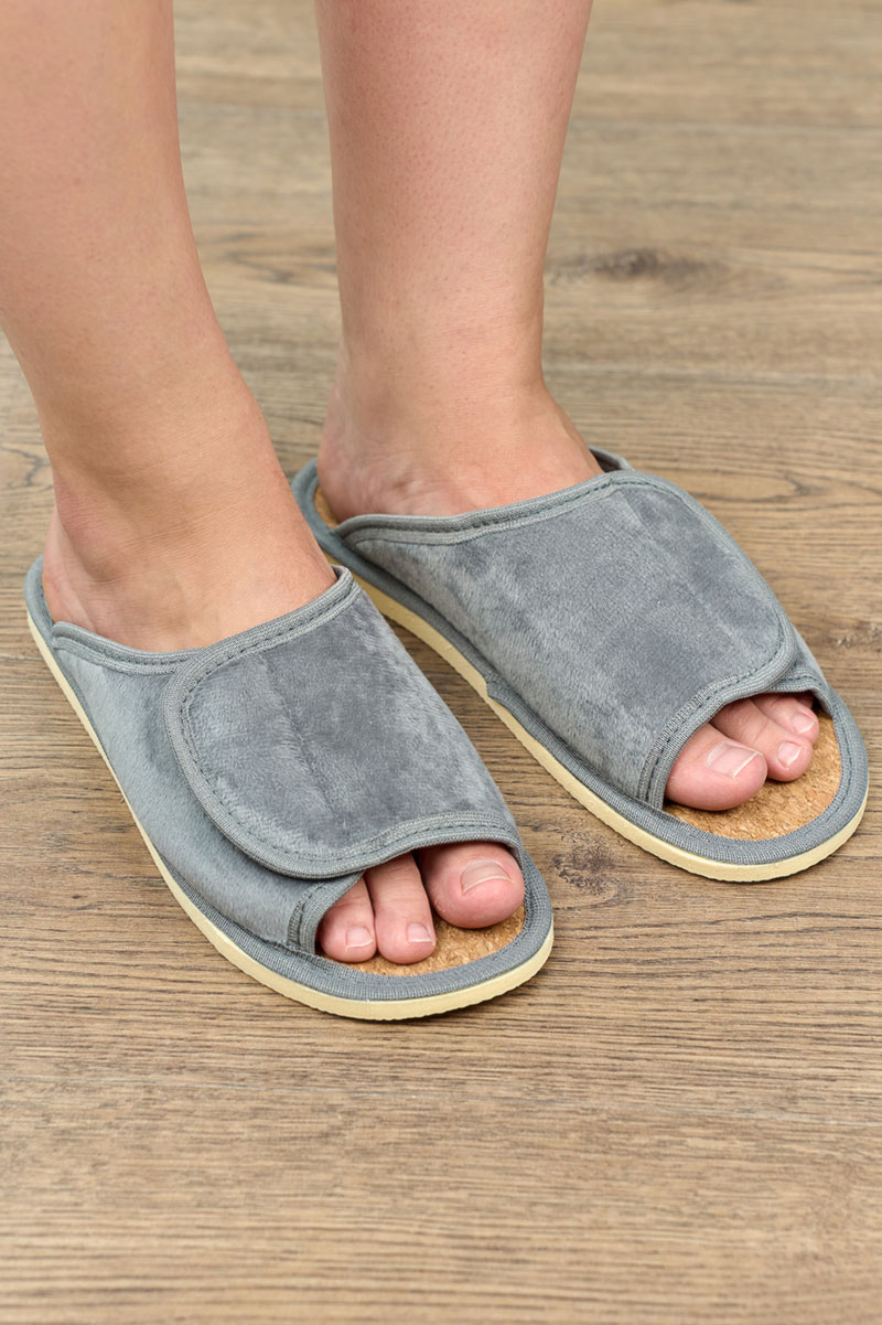Представляем Вашему вниманию легкие домашние женские тапочки. Их можно предложить своим гостям, или взять с собой на отдых, в дорогу. А как приятно после тяжелого рабочего дня переобуться в тапочки с комфортной посадкой по ноге! Благодаря липучке они подходят на стопу с любой полнотой и подъёмом! Тапочки с открытым мыском не натирают ноги. Верхняя часть домашних тапок выполнена из качественного текстиля, который легко пропускает воздух. В таких тапочках нога не потеет и не скользит. Стелька выполнена из качественной пробки, благодаря которой их очень комфортно носить как с носком, так и на босу ногу! Они спасают от холодного и мокрого пола. Подошва изготовлена из ЭВА, это легкий, упругий, эластичный и износостойкий материал. Все швы качественно обработаны производителем. Классическая модель подойдет для носки в любое время года: в осенний, весенний и летний, в зимний период, будет удобна в качестве домашних комнатных, дачных или рабочих.