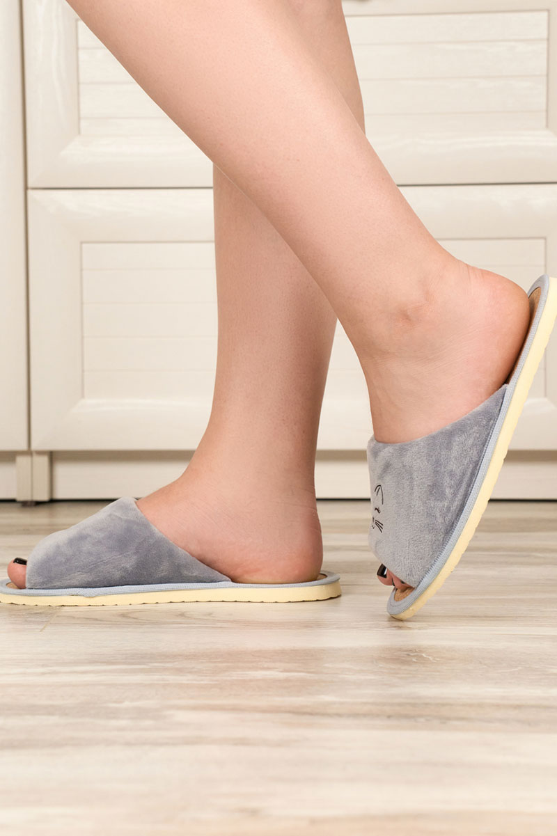 Представляем Вашему вниманию легкие домашние женские тапочки. Их можно предложить своим гостям, или взять с собой на отдых, в дорогу. А как приятно после тяжелого рабочего дня переобуться в тапочки с комфортной посадкой по ноге! Тапочки с открытым мыском не натирают ноги. Верхняя часть домашних тапок выполнена из качественного велюра, который легко пропускает воздух. В таких тапочках нога не потеет и не скользит. Они спасают от холодного и мокрого пола и подходят на любую полноту стопы. Стелька выполнена из качественной пробки, благодаря которой их очень комфортно носить как с носком, так и на босу ногу! Подошва изготовлена из ЭВА, это легкий, упругий, эластичный и износостойкий материал. Все швы качественно обработаны производителем. Классическая модель подойдет для носки в любое время года: в осенний, весенний и летний, в зимний период, будет удобна в качестве домашних комнатных, дачных или рабочих.