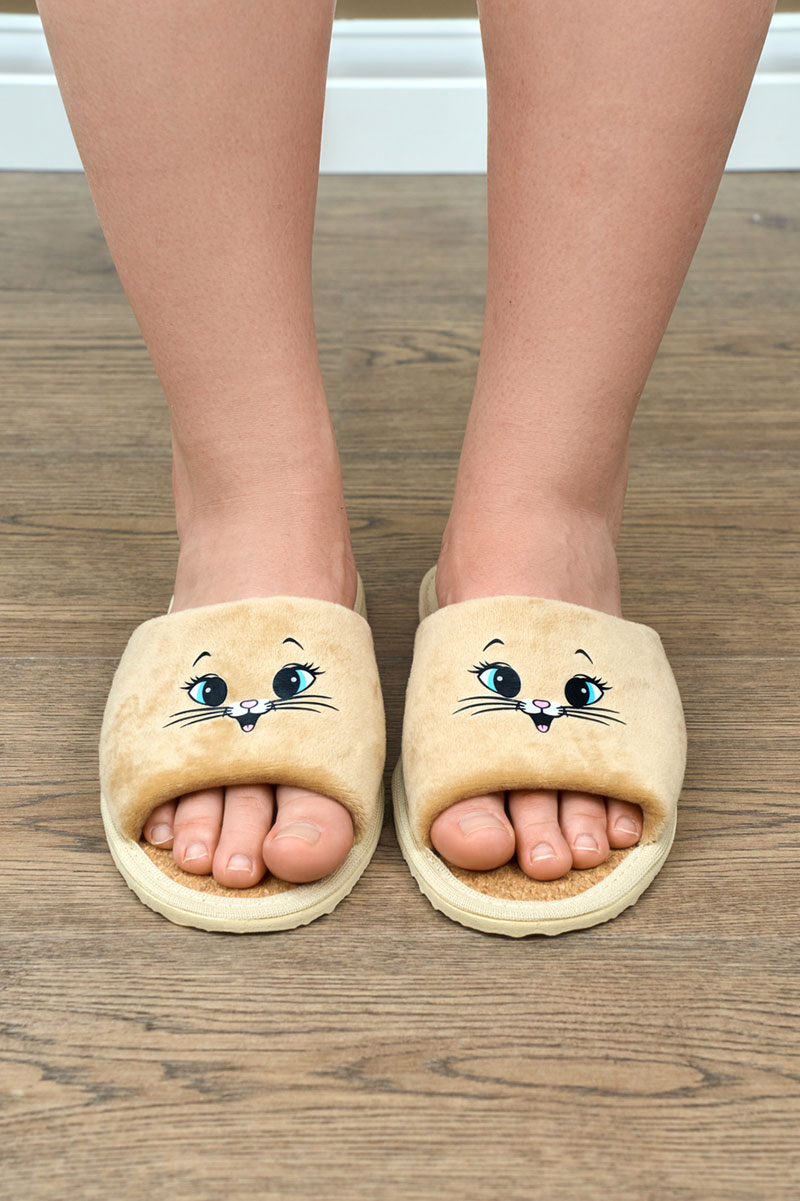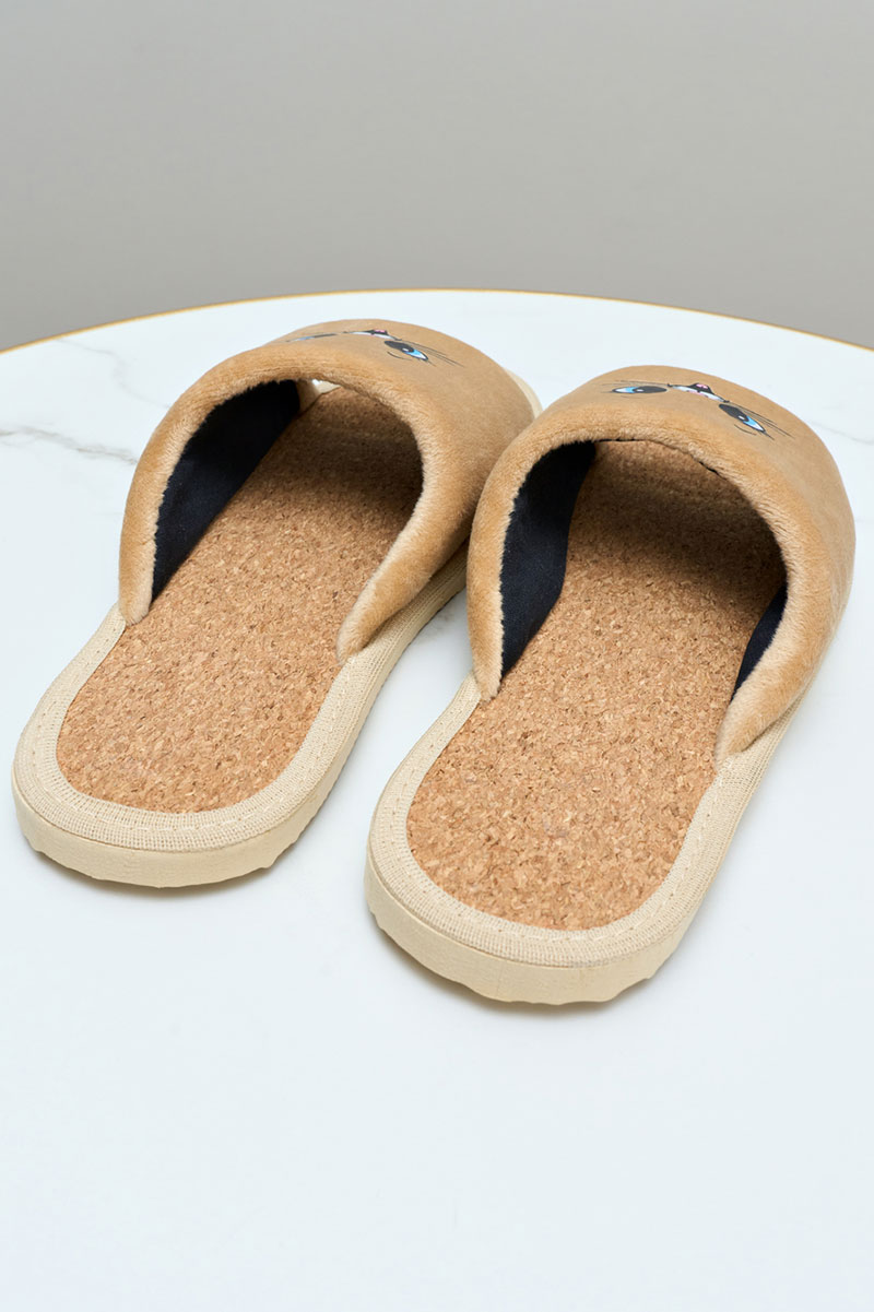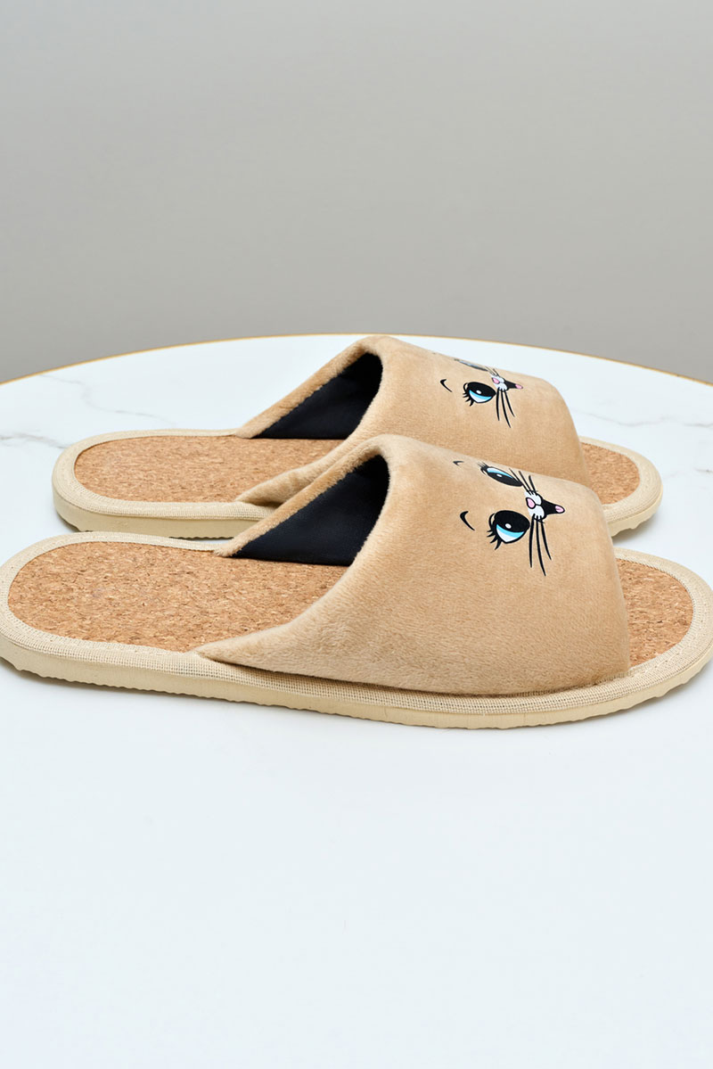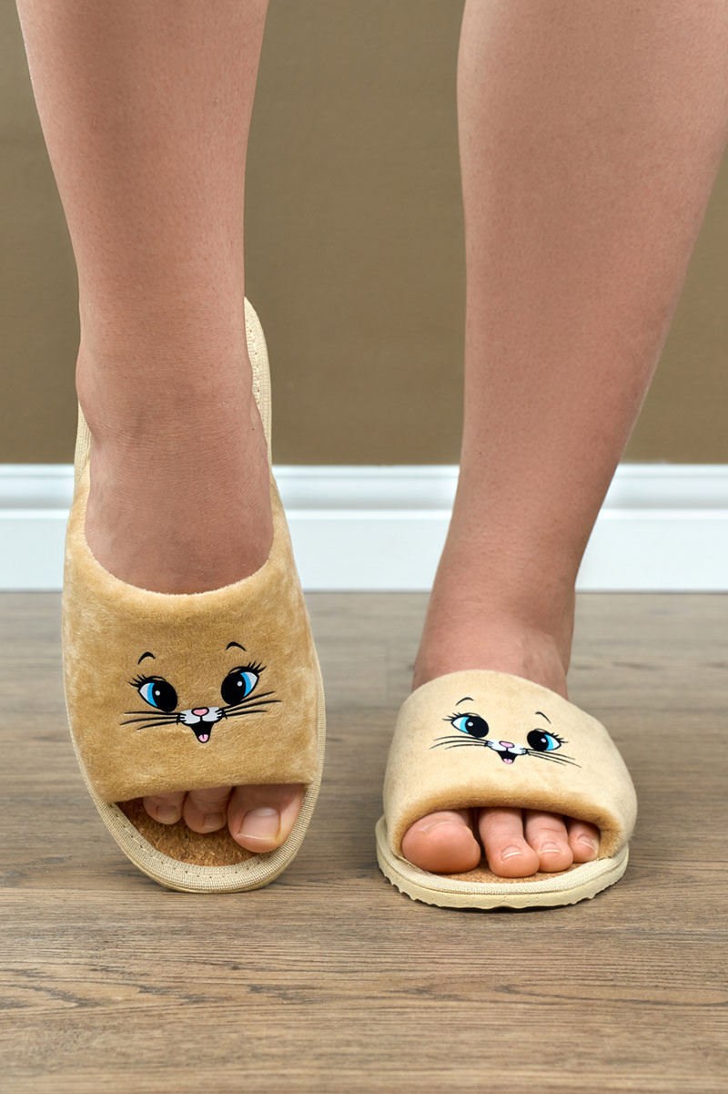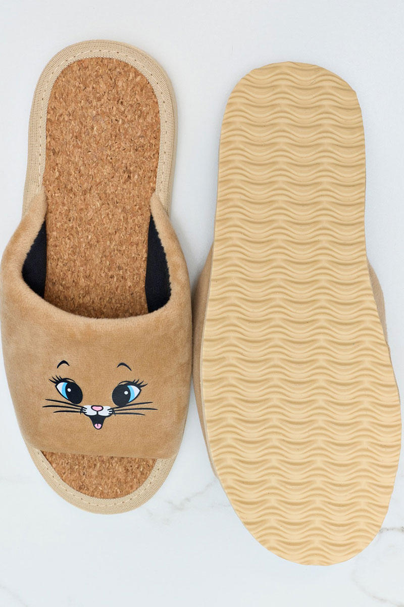 Тапки женские "Lepilov" арт. 130п велюр + пробка (р-ры: 36-42) беж. вел. кот. мульт.