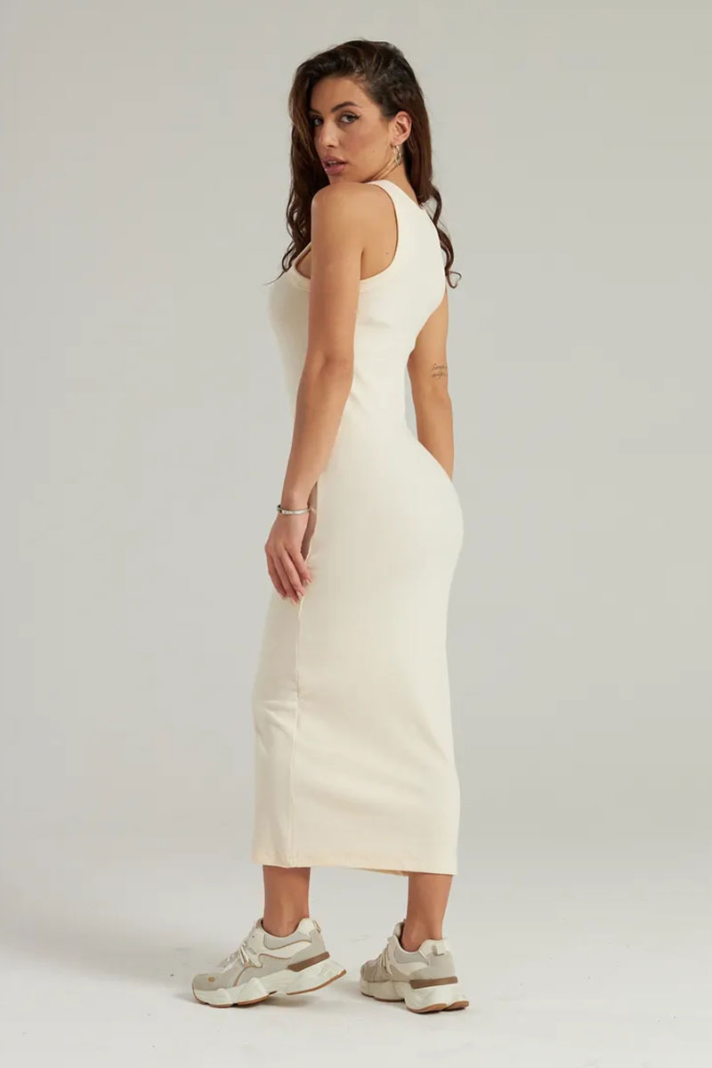 Платье-макси с футлярным силуэтом и лямками выглядит женственно и элегантно. Обтягивающее платье хорошо сочетается с кроссовками и спортивными аксессуарами. Трикотажное платье практично и универсально: его можно носить дома, в офисе, в школе или университете.