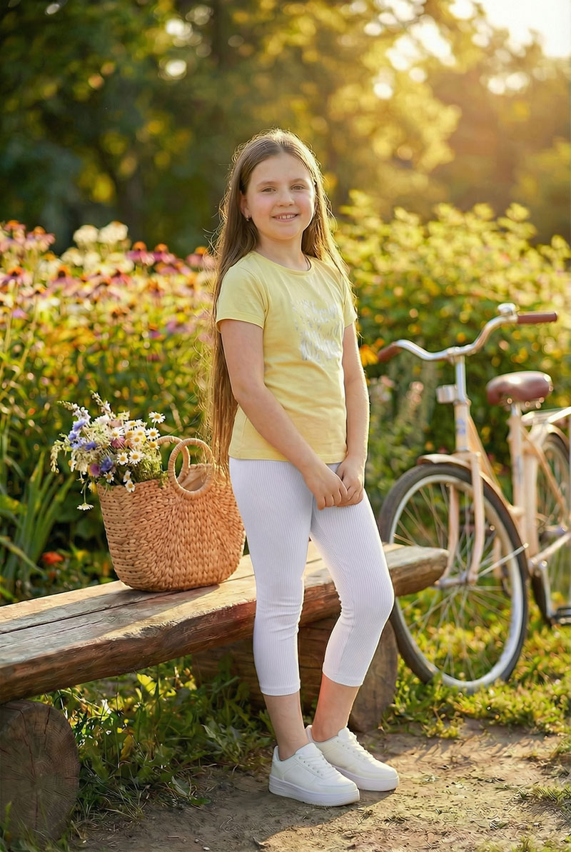 Представляем Вашему вниманию детские бриджи. Прилегающий силуэт, пояс на эластичной резинке, длина ниже колена. Бриджи очень удобные, из мягкого материала, хорошо тянутся.