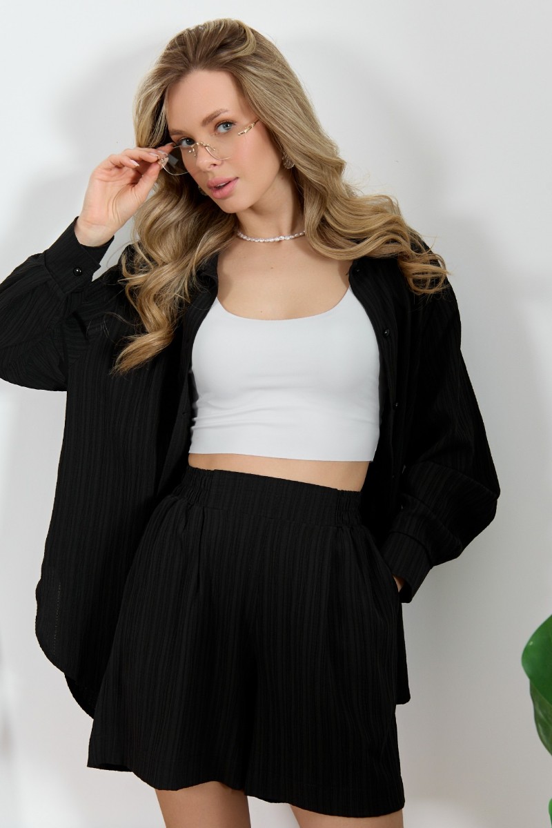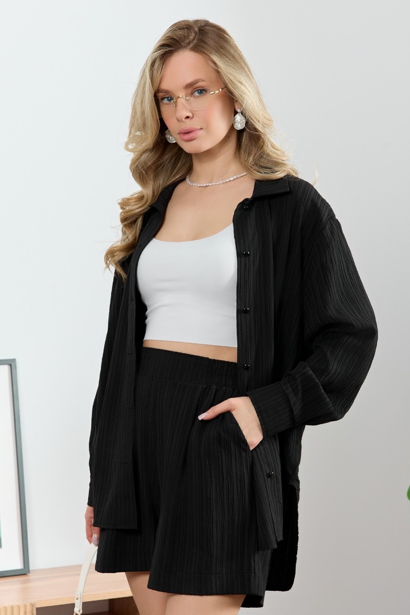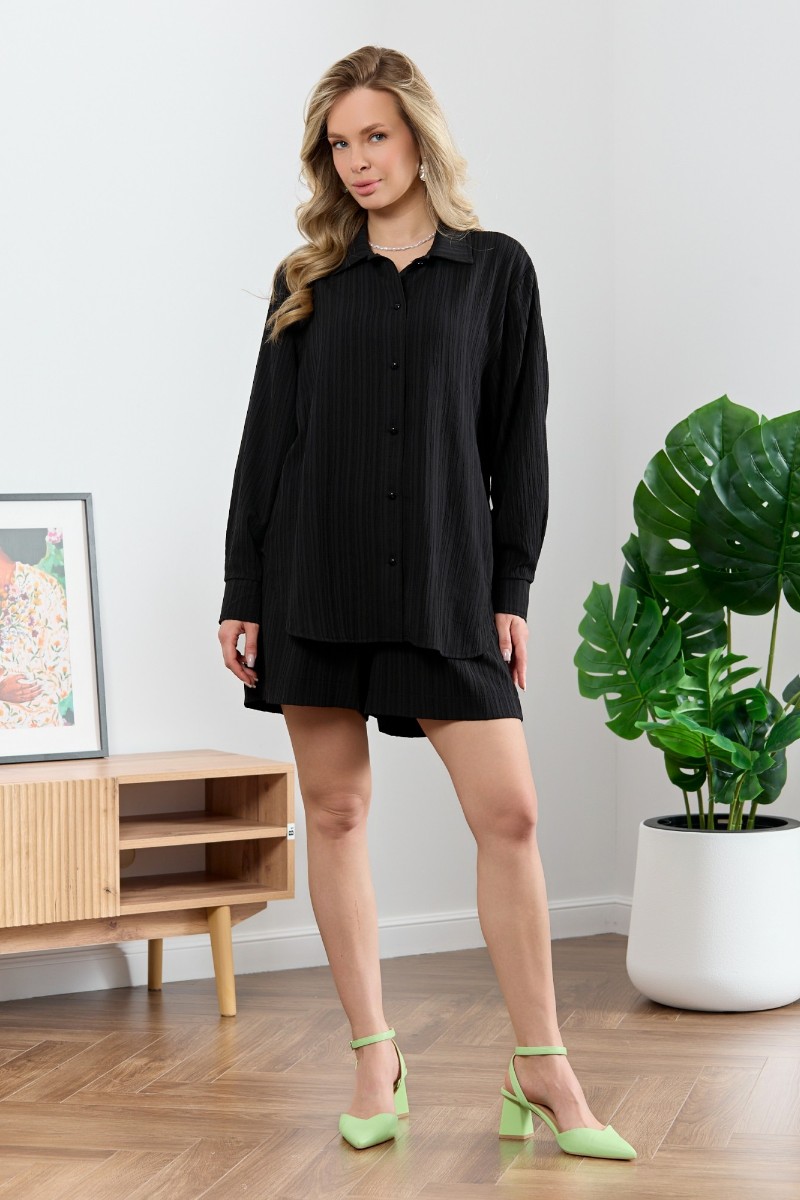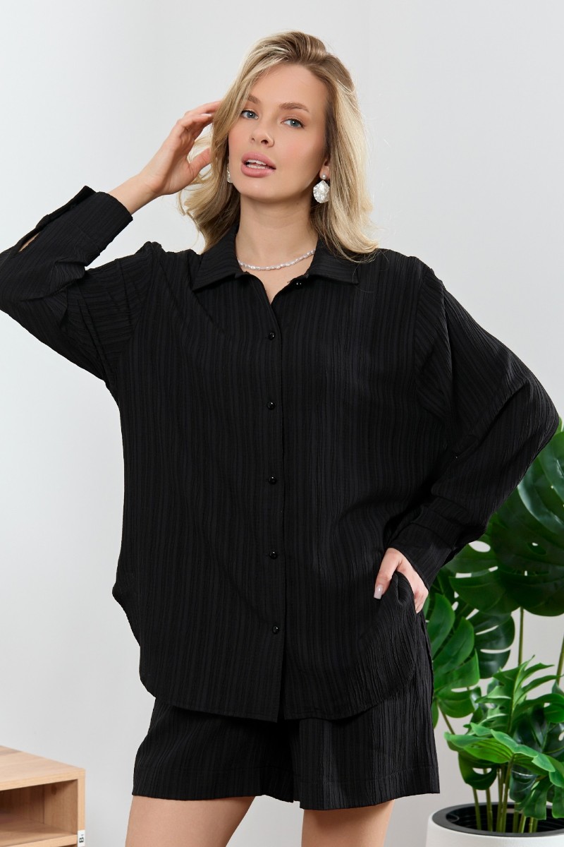Рубашка женская "Сиеста-5" плательная ткань (р-ры: 44-58) черный