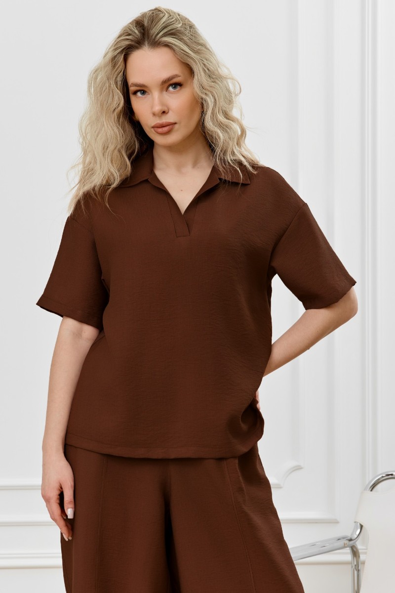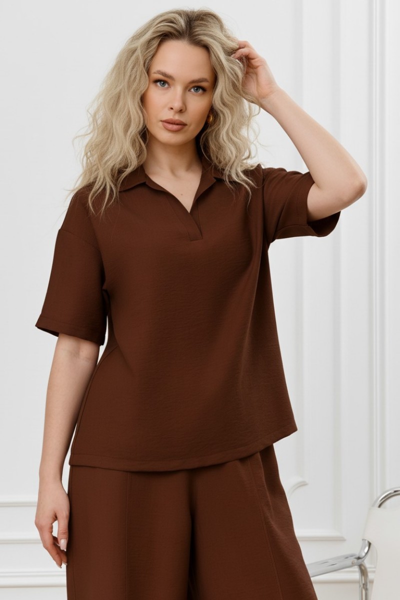 Блузка женская "Ясмина-1" фактурное полотно (р-ры: 44-54) коричневый