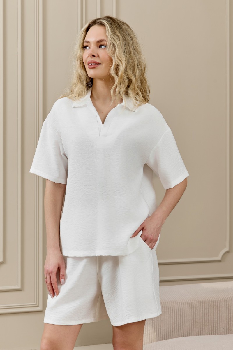 Блузка женская "Ясмина-1" фактурное полотно (р-ры: 44-54) белый